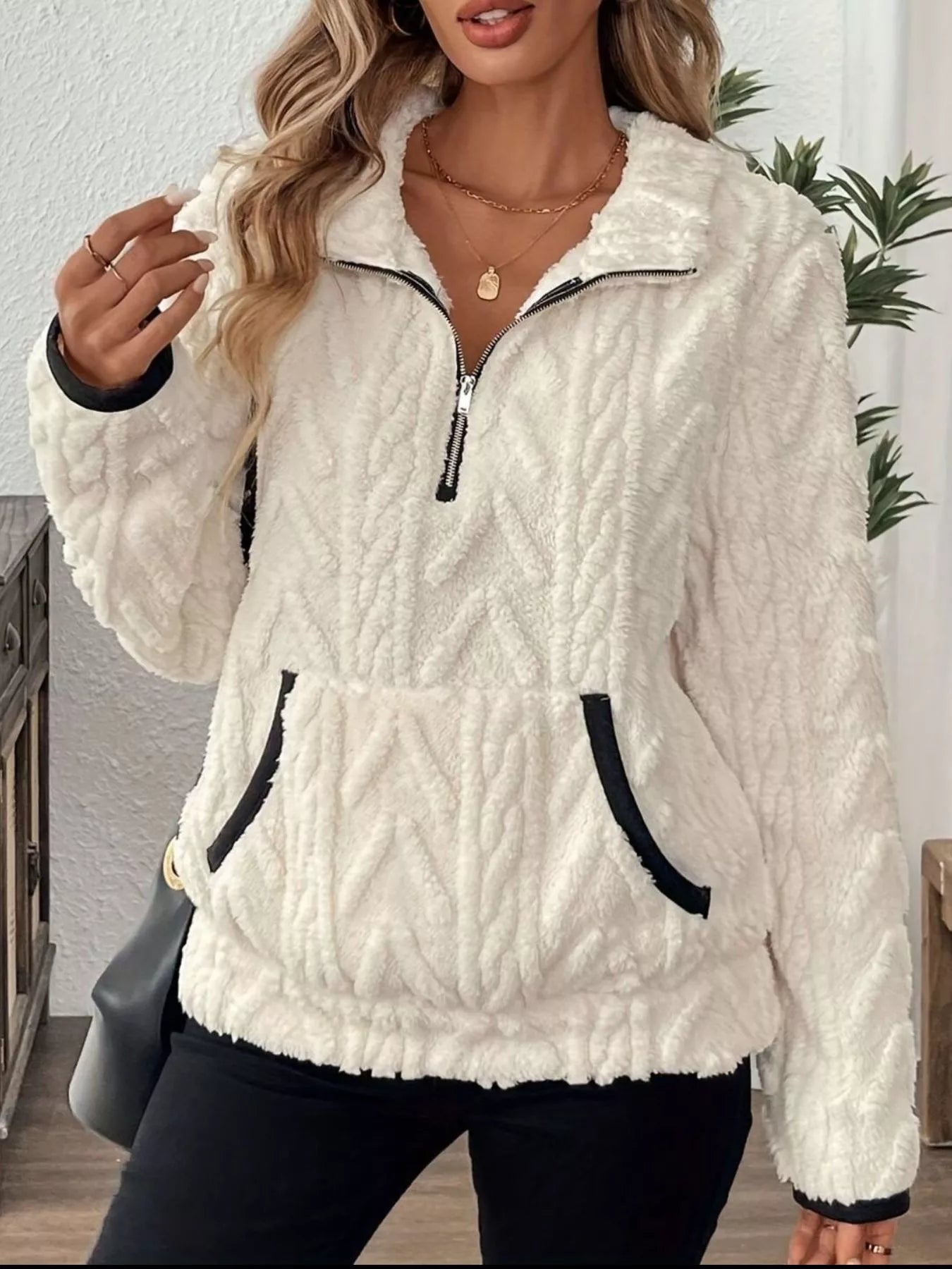 Full Size Half Zip Kangaroo Pocket Sweatshirt Plus Size