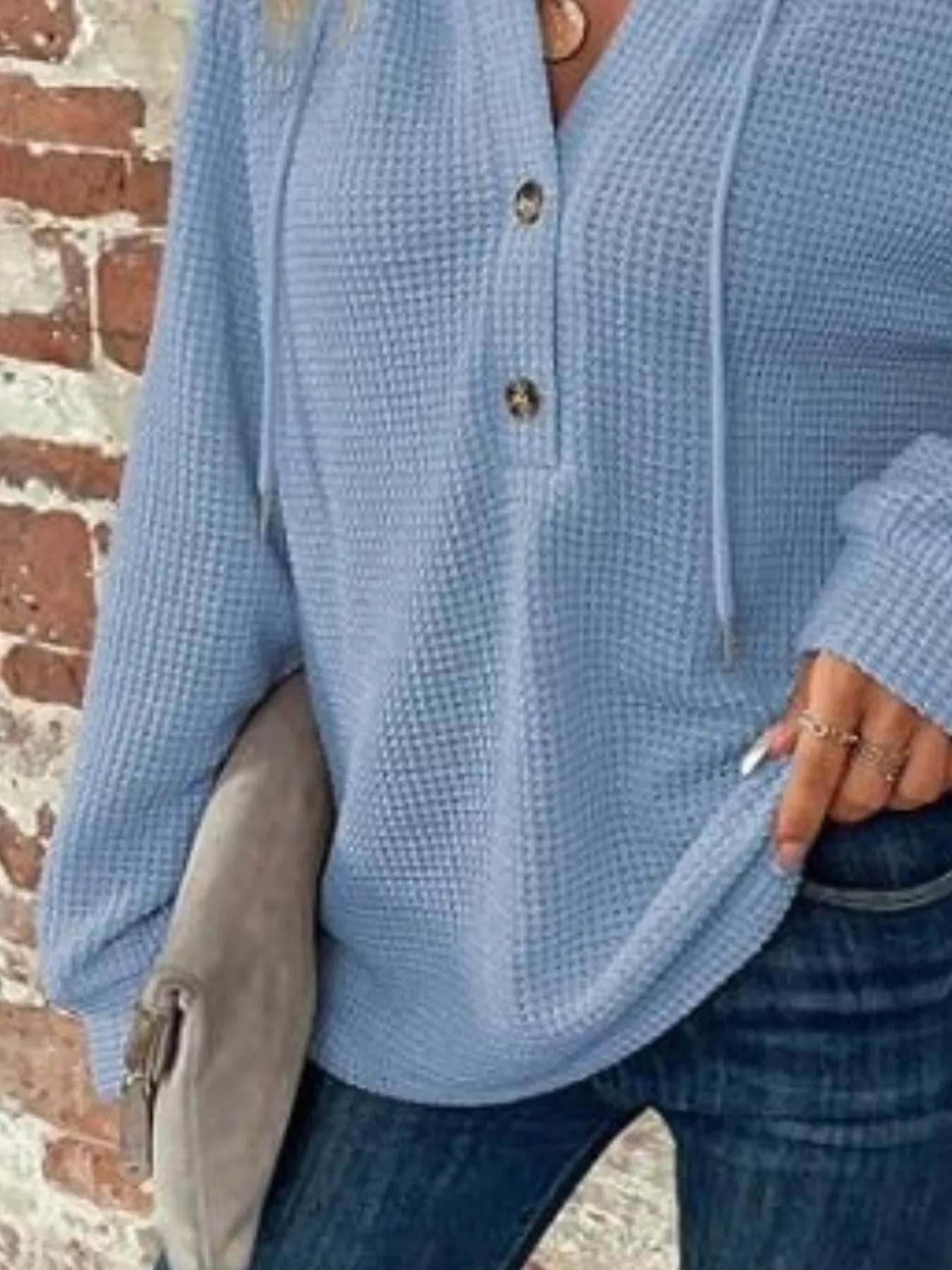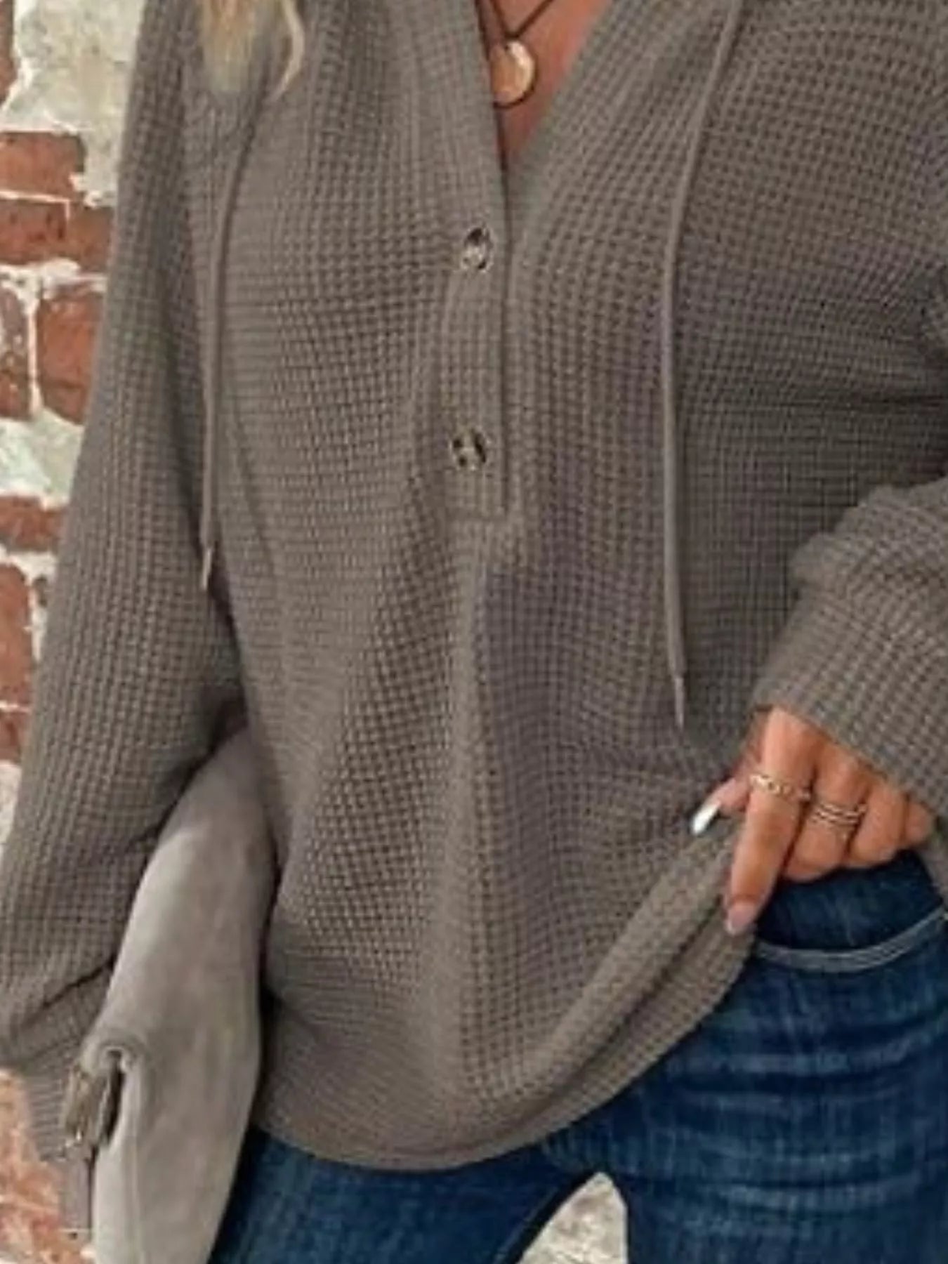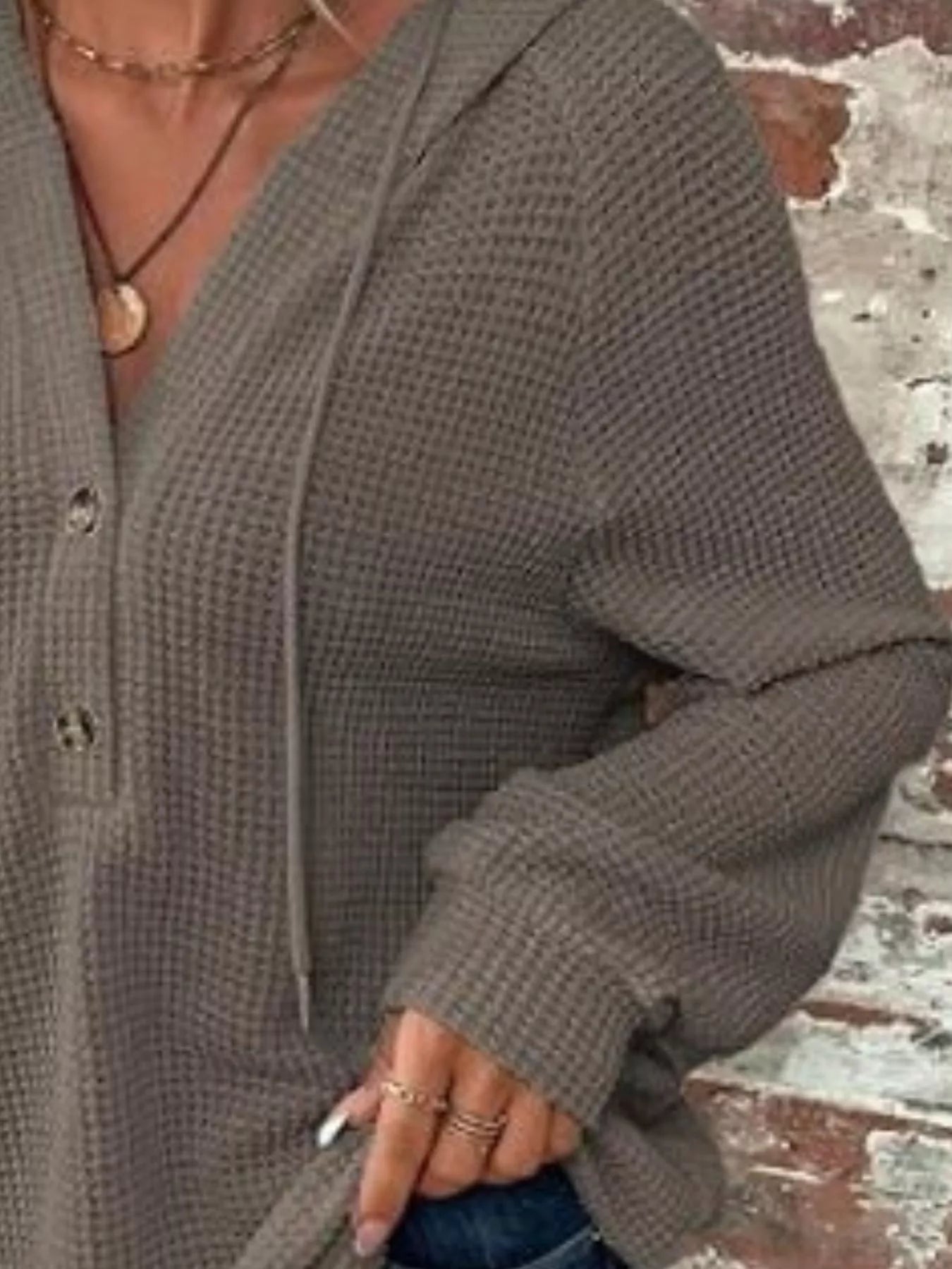 - Features:Waffle-Knit,Buttoned,Drawstring,Pocketed