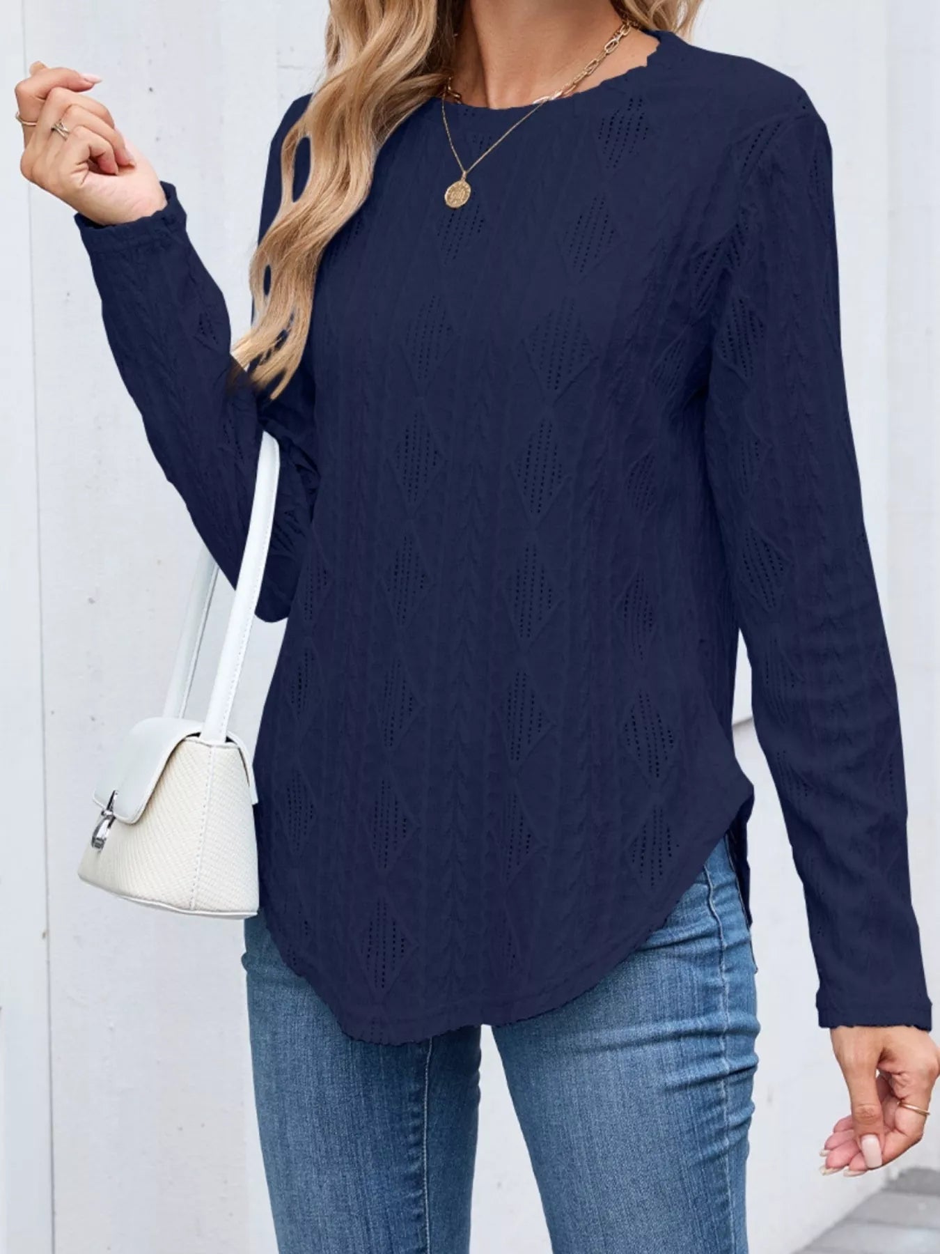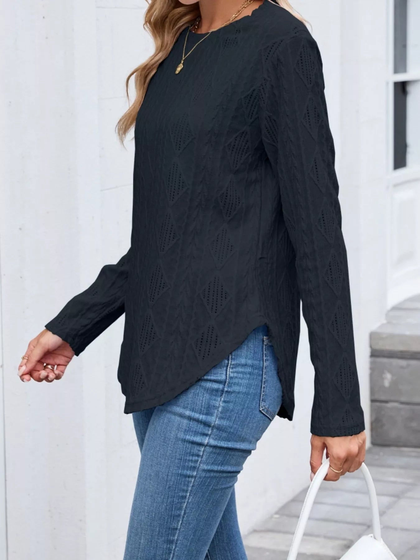 Diamond Pattern Knit Long Sleeve T-Shirt