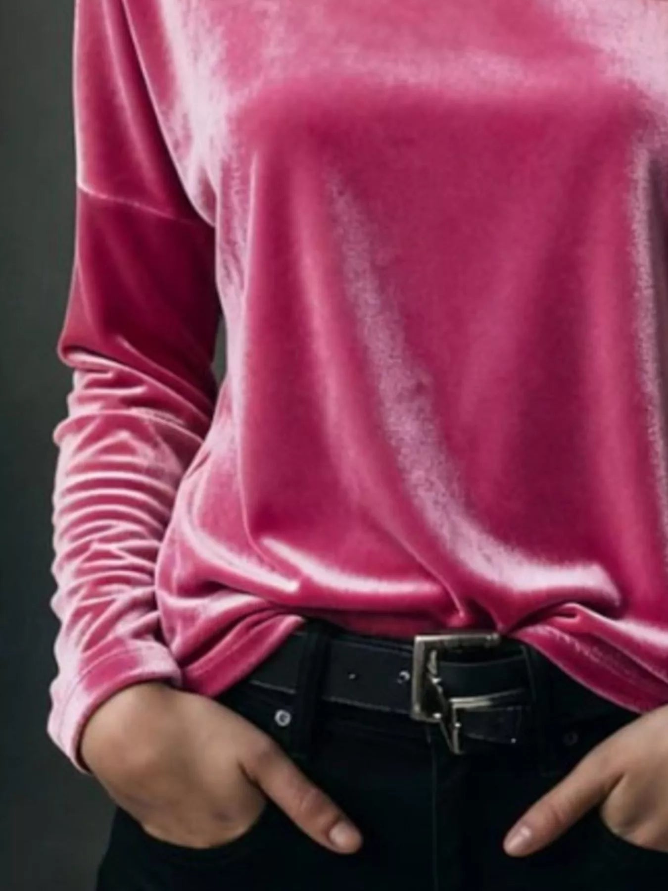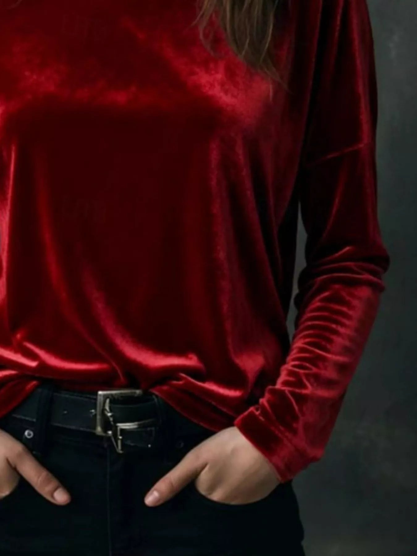 Full Size Velvet Long Sleeve T-Shirt Plus Size