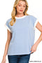 The round neck short sleeve relaxed fit basic top in jersey with high-low hem features a back patch with outseam detail, vintage washing, and solid color for a stylish and versatile look. The relaxed fit provides comfort and ease of movement, while the high-low hem adds a modern twist to the classic tee design. The outseam detail on the back patch adds a unique touch to the top's overall appearance. The vintage washing gives the top a worn-in, lived-in look for a casual and laid-back vibe. This basic top is a great wardrobe staple that can be easily dressed up or down for various occasions.