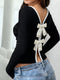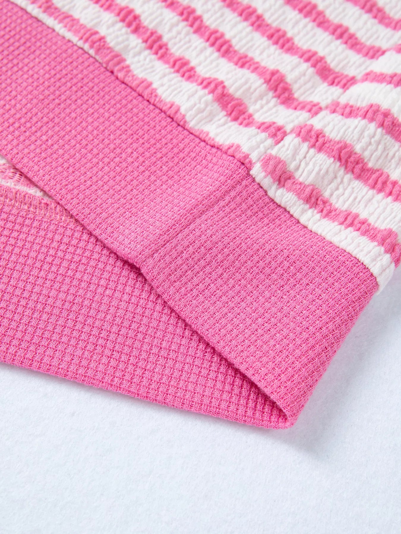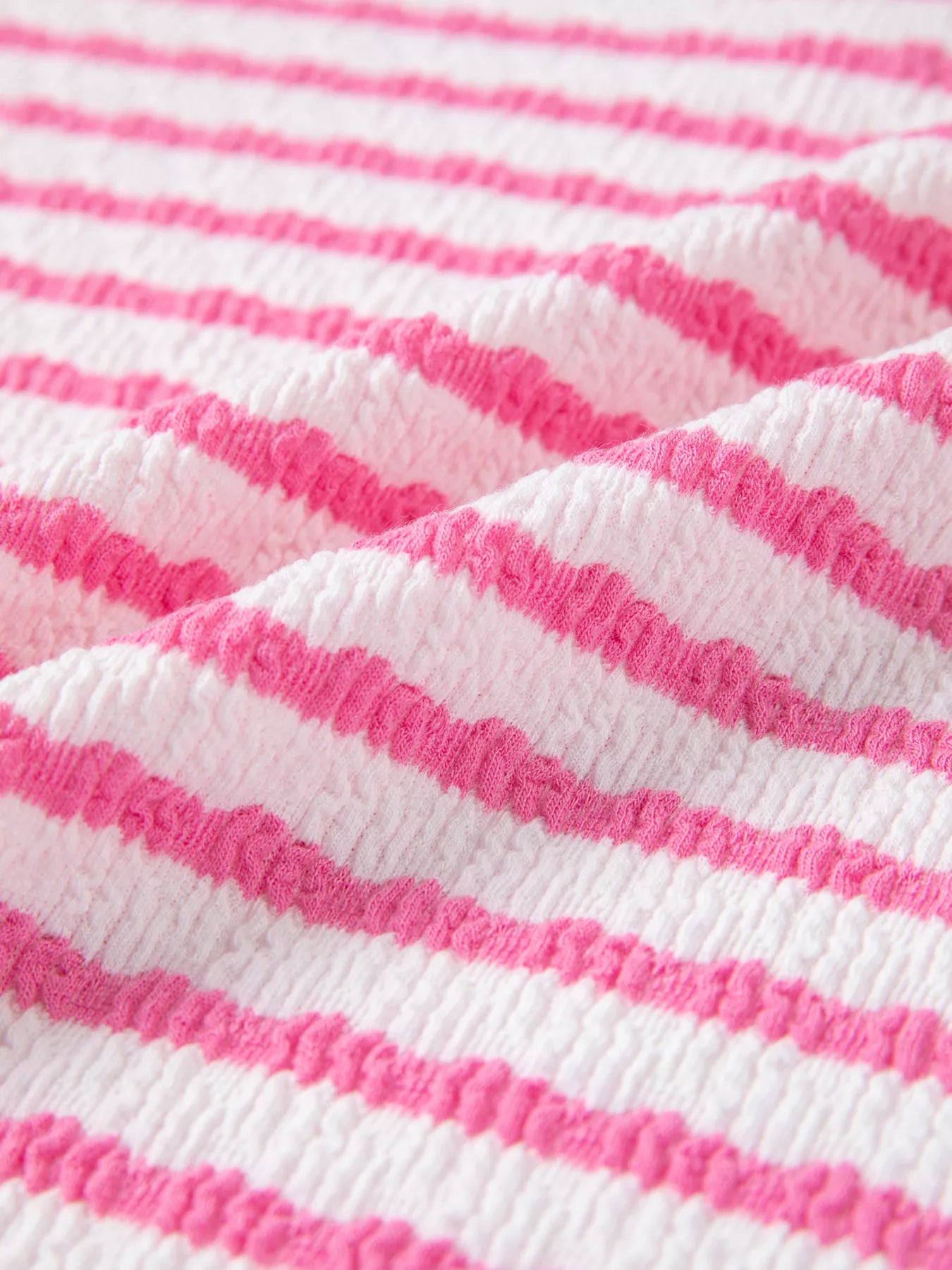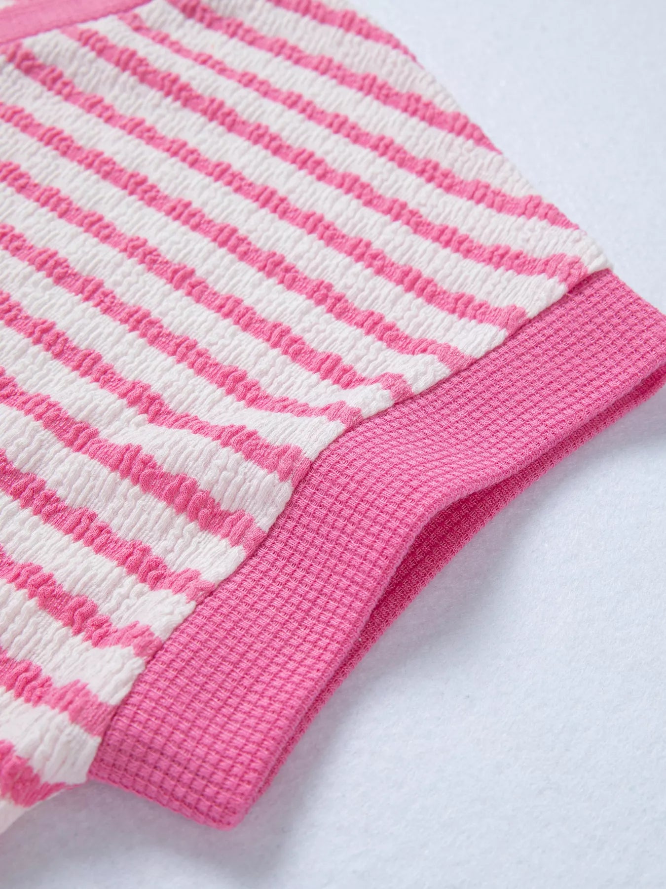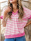 Stripe Textured Knit Contrast Trim V Neck Short Sleeve Top