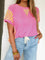Waffle Textured Contrast Striped Patchwork Loose T Shirt
