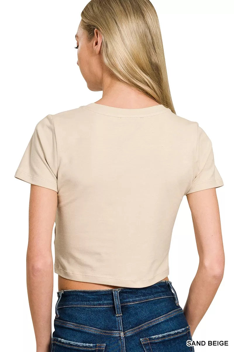 Zenana Cotton Short Sleeve Round Neck Cropped Top