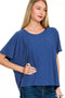 Zenana Slub Rolled Short Sleeve V-Neck Tee