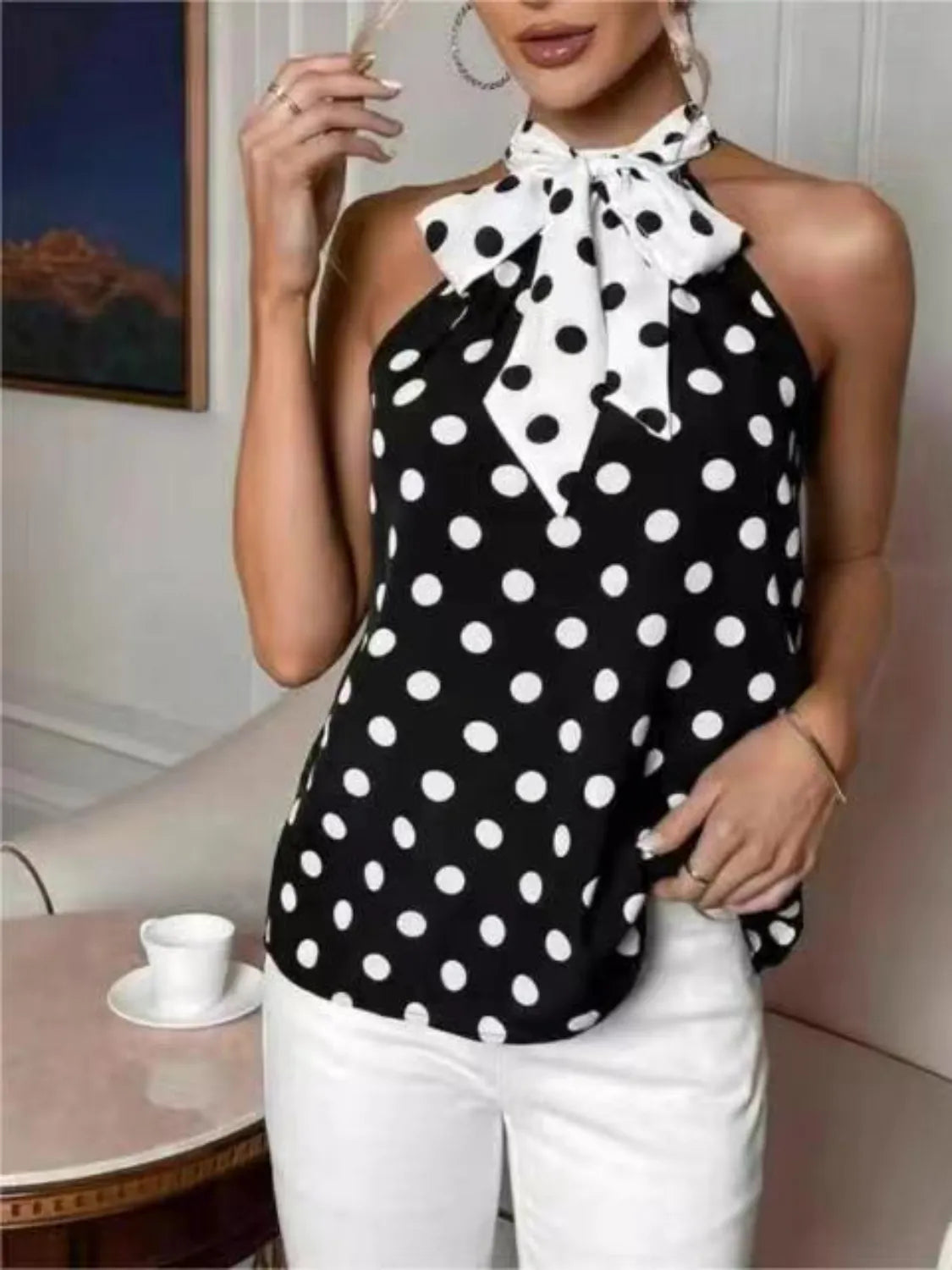 Polka Dot Tie Front Cami