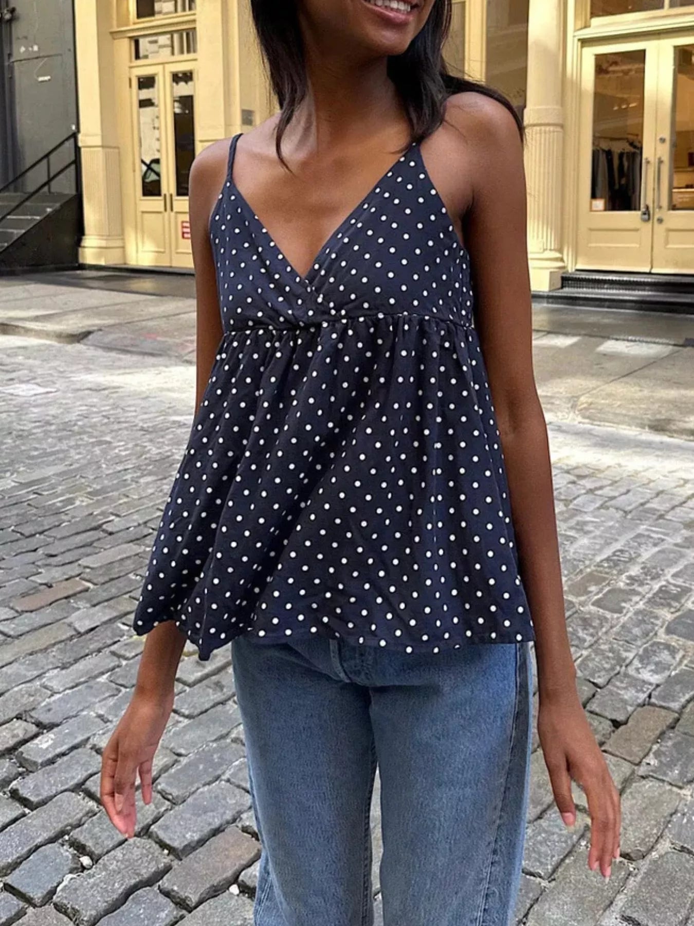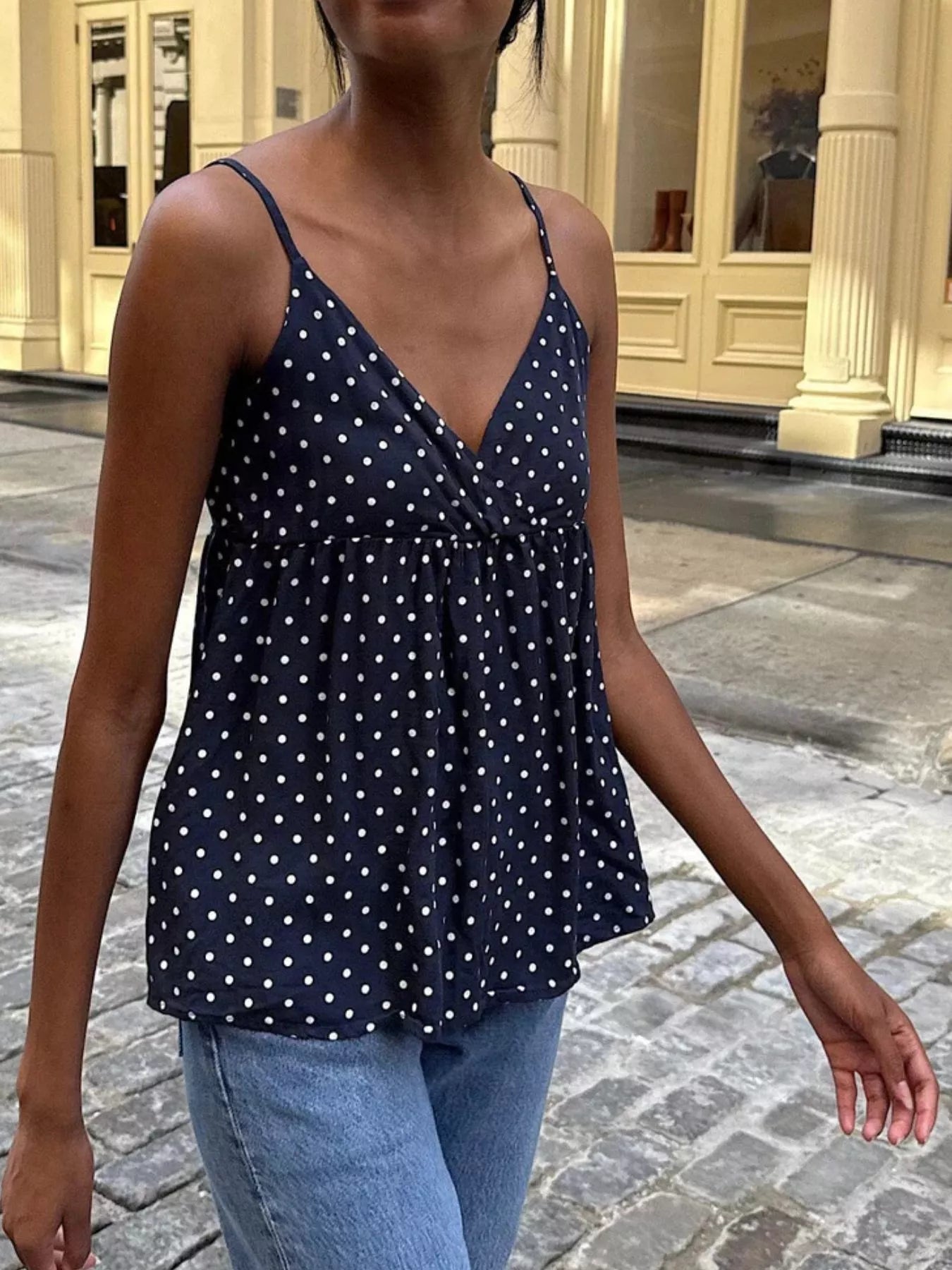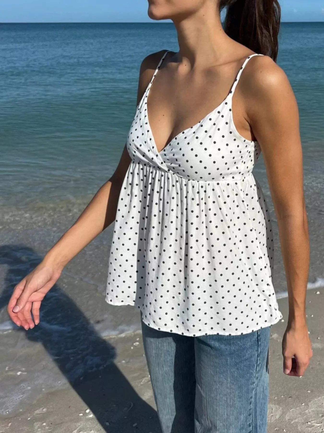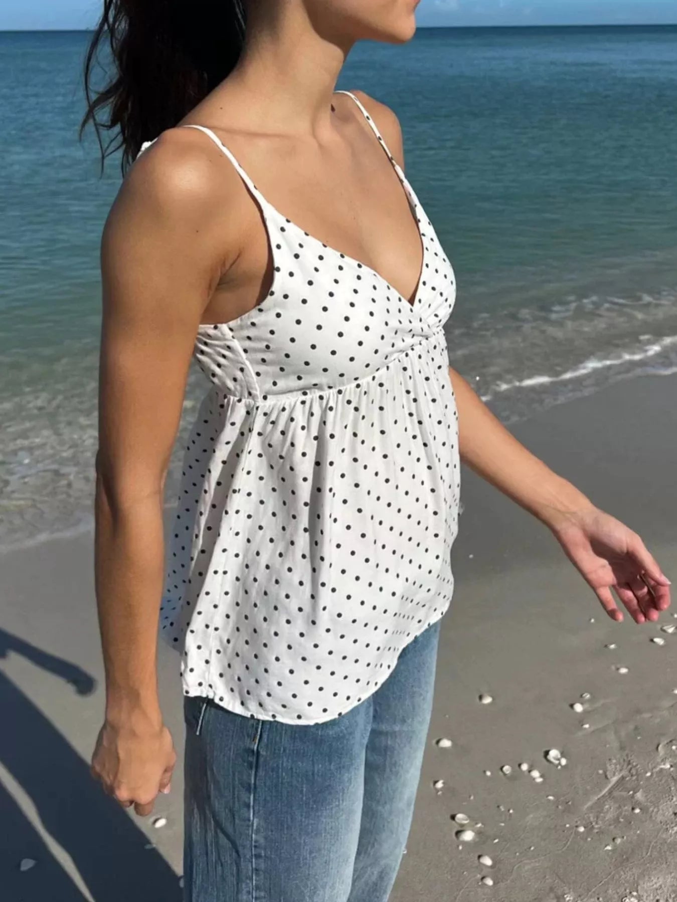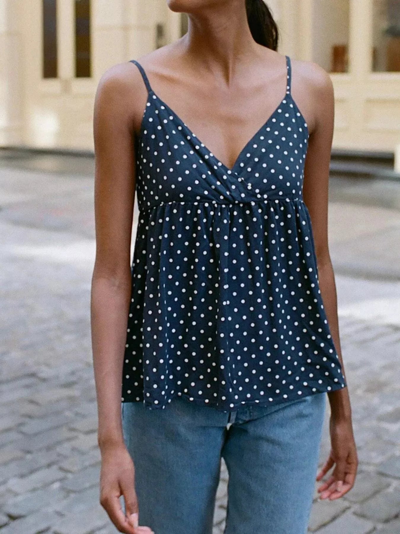 Polka Dot V-Neck Flowy Cami