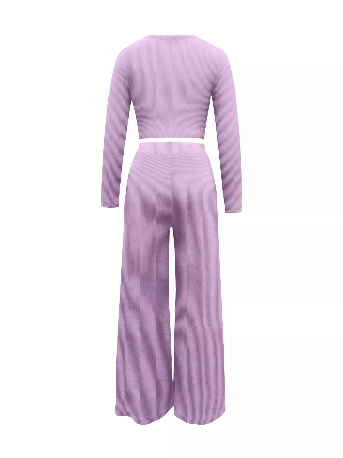 Casual Long Sleeve Crop Top and Wide Leg Pants Set