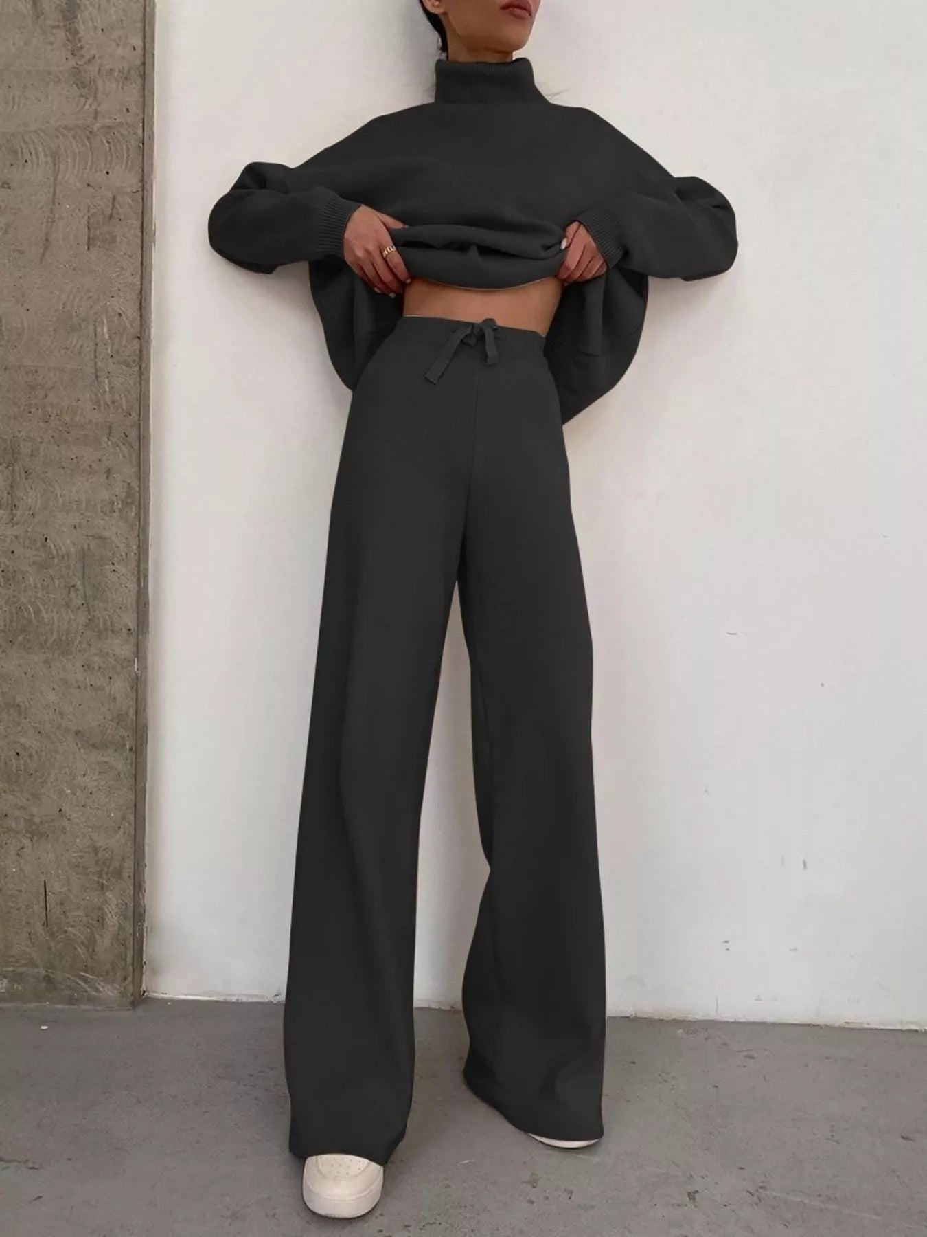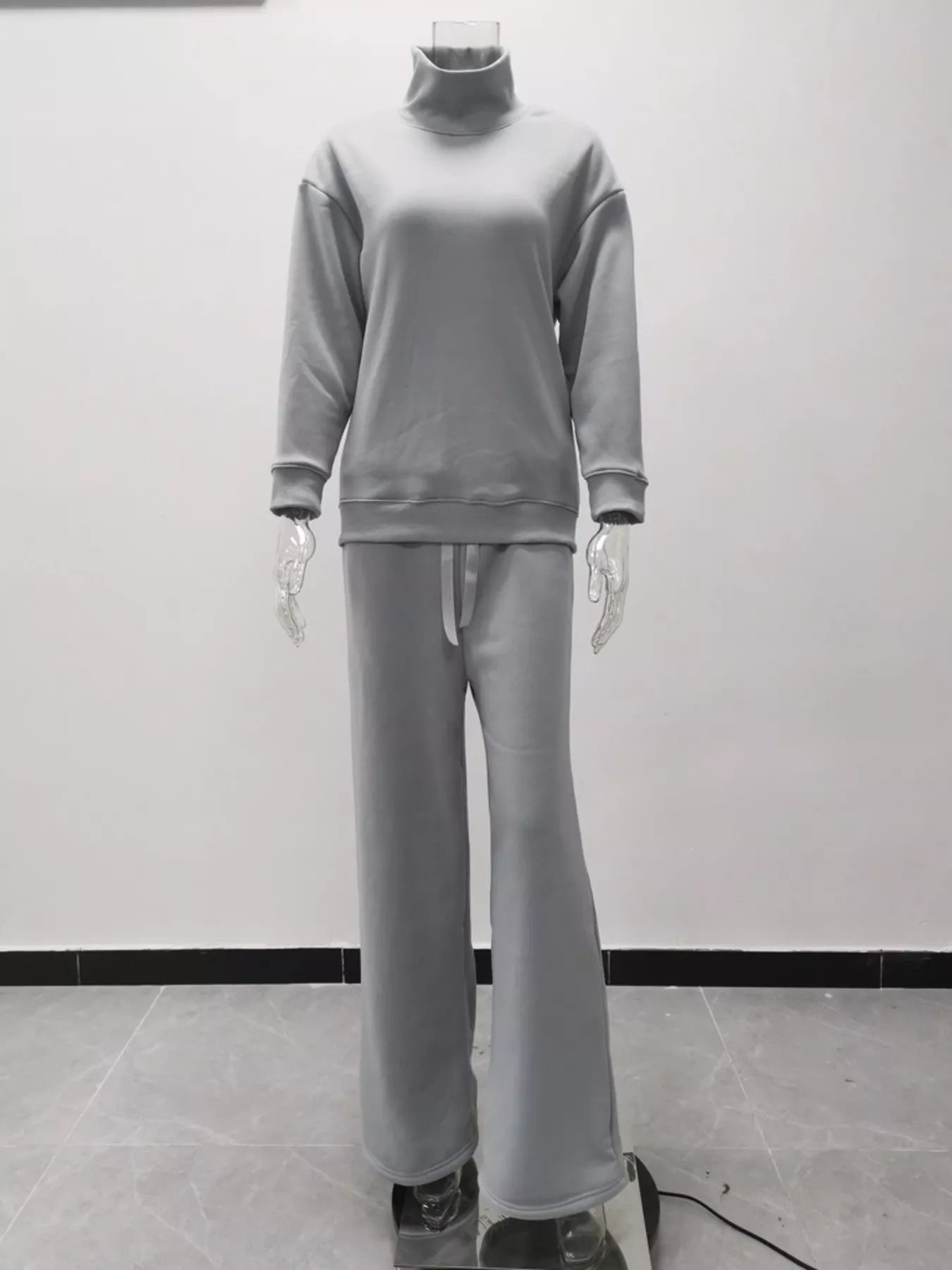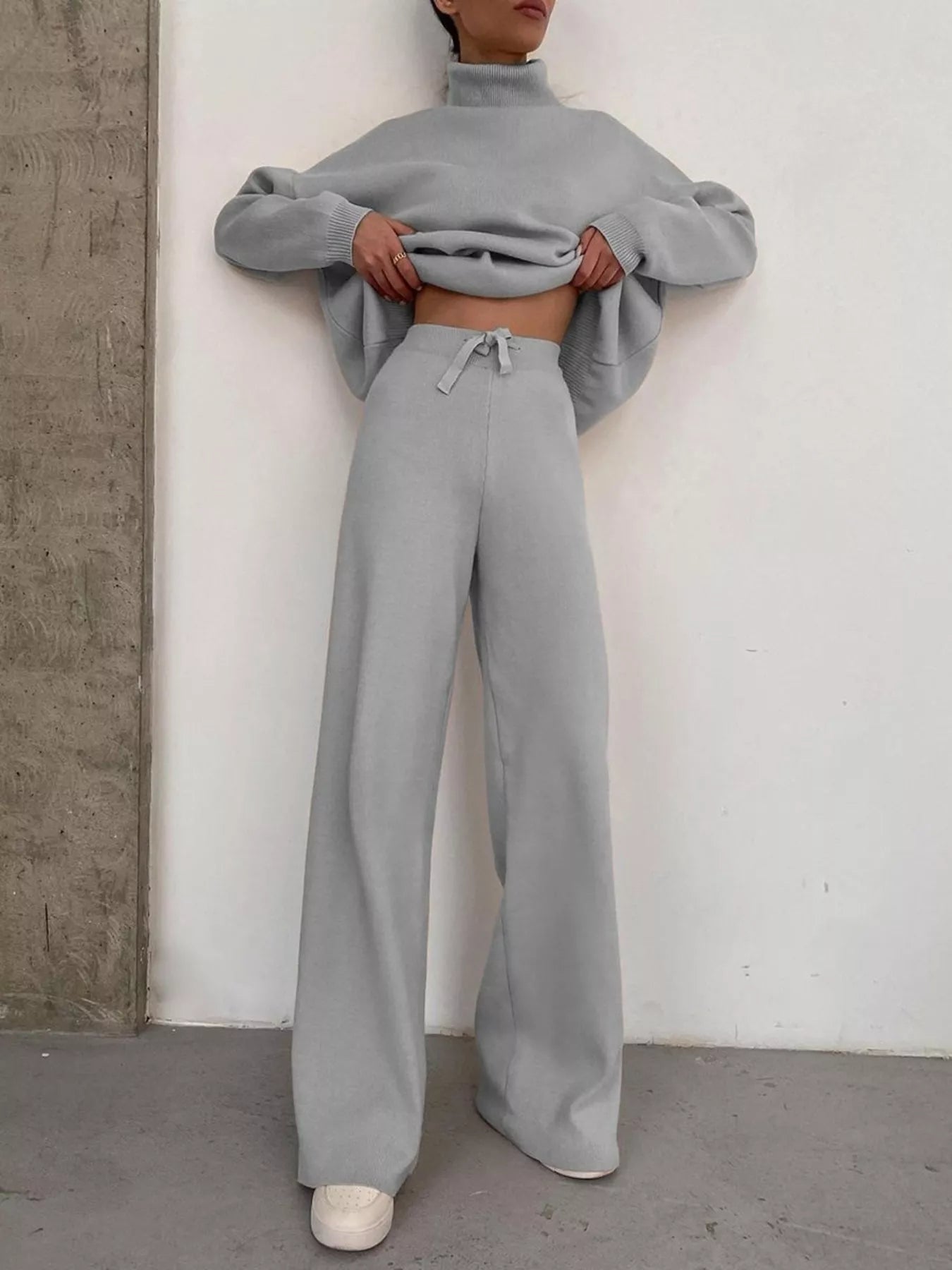 Full Size Turtleneck Long Sleeve Top and Pants Sweater Set Plus Size