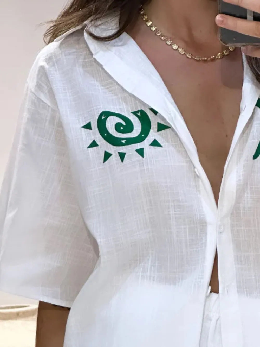 Printed Button Down Shirt and Shorts Set