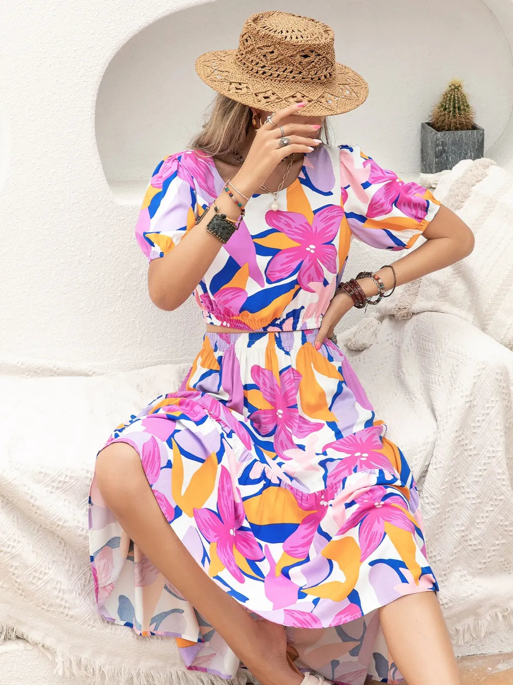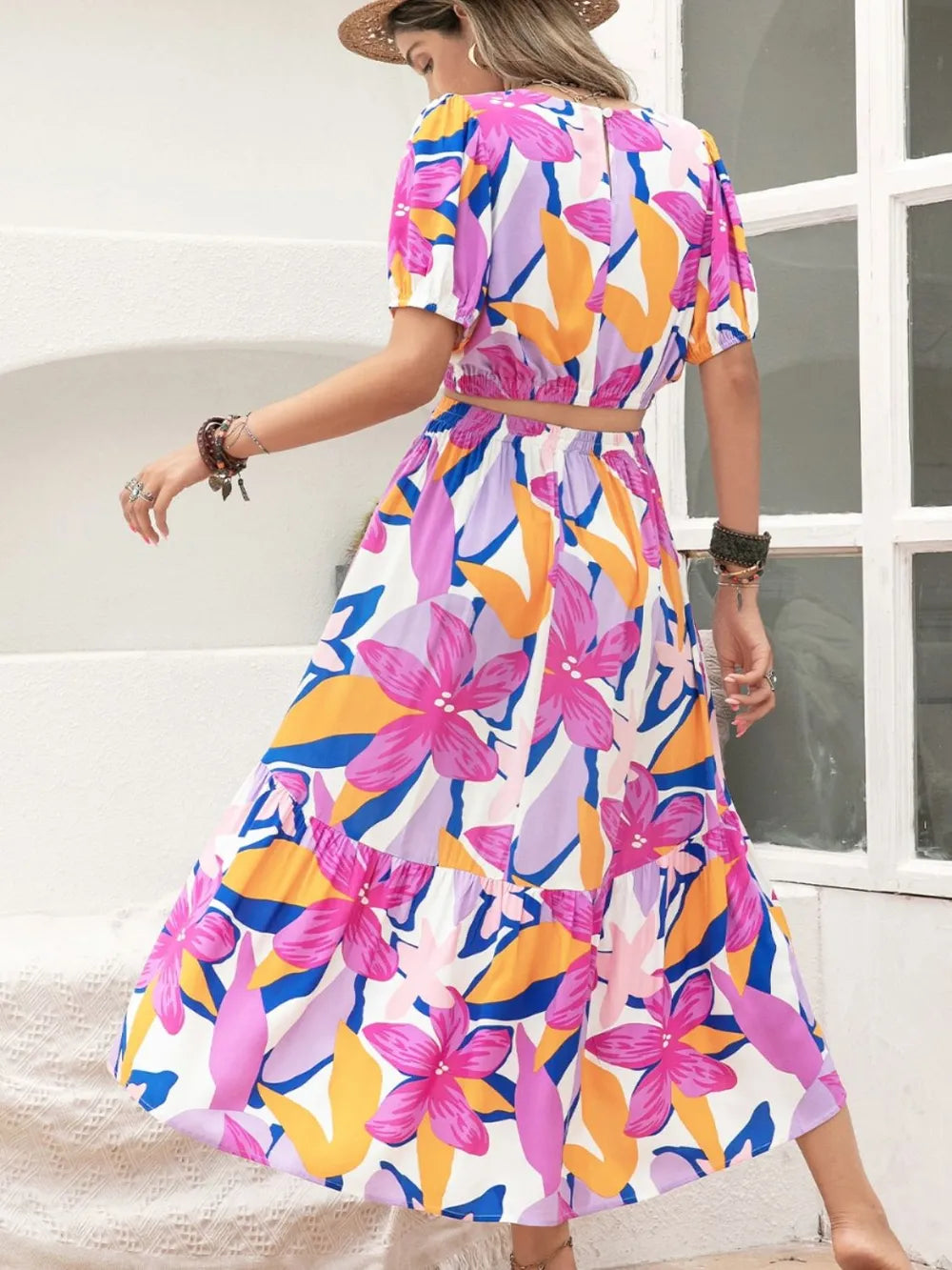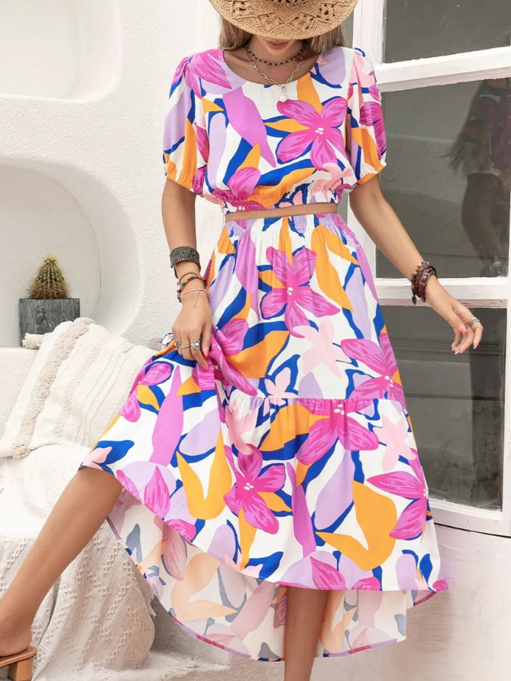 Printed Round Neck Top and Skirt Set