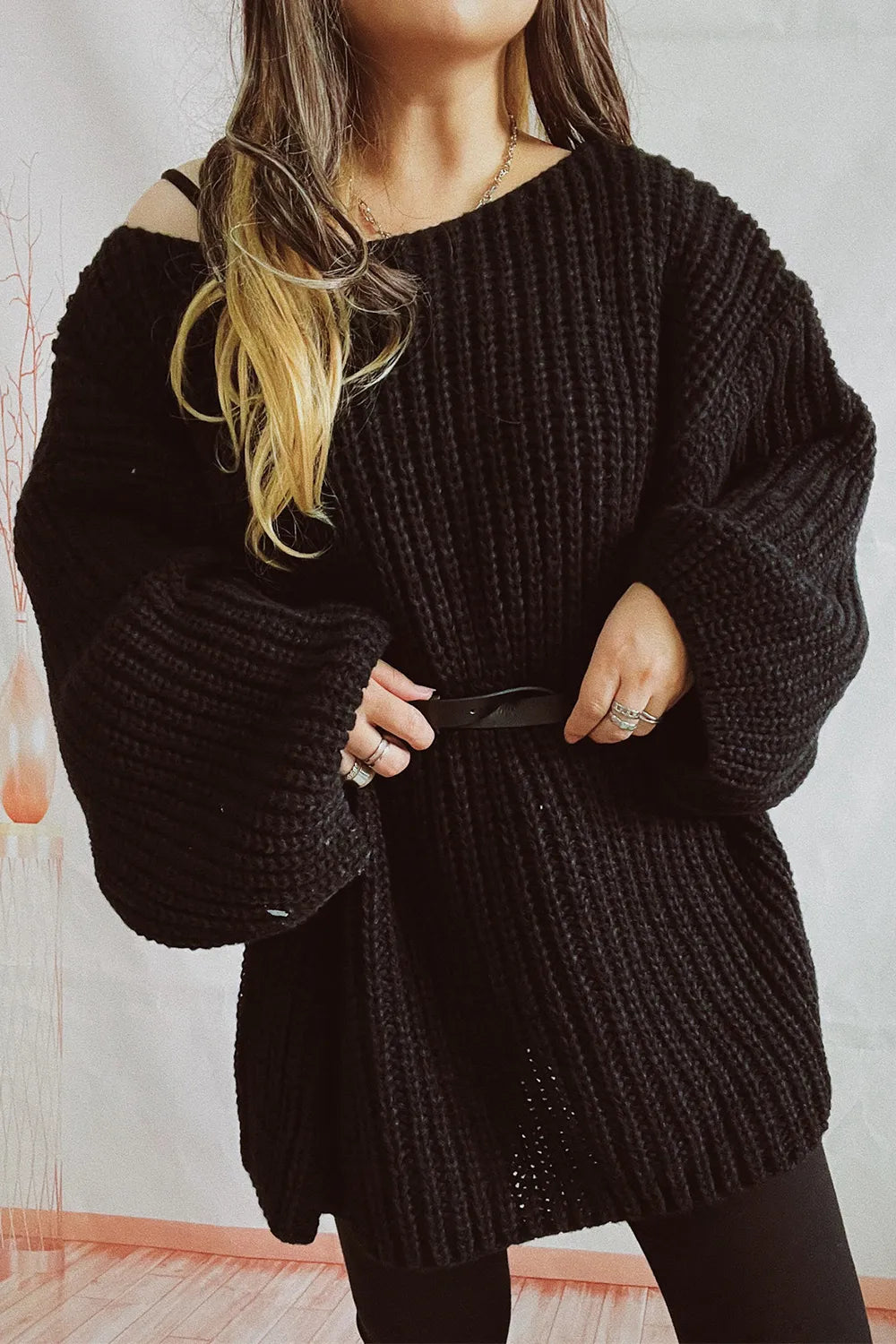 Boat Neck Dropped Shoulder Mini Sweater Dress