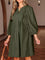Bracelet Sleeve Split Neck Scallop Detail Pleated Corduroy Mini Dress
