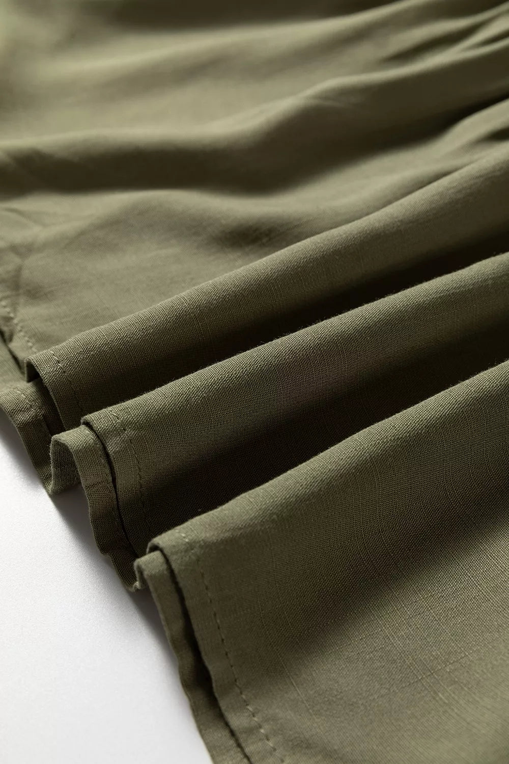 Collared V Neck Smocked Detail Contrast Leopard Trim Dress