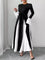 Contrast Round Neck Flare Sleeve Maxi Dress