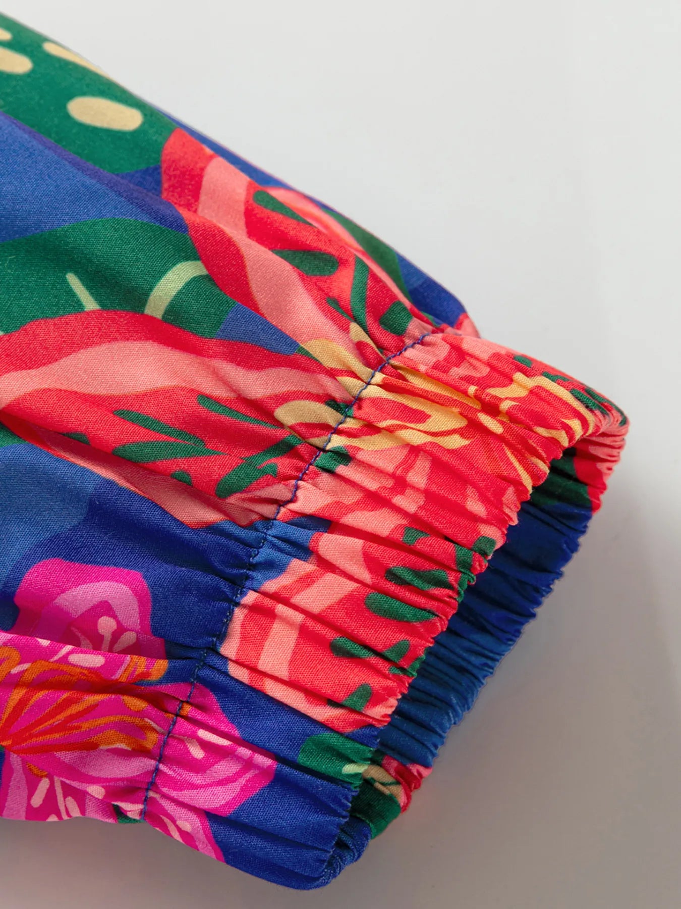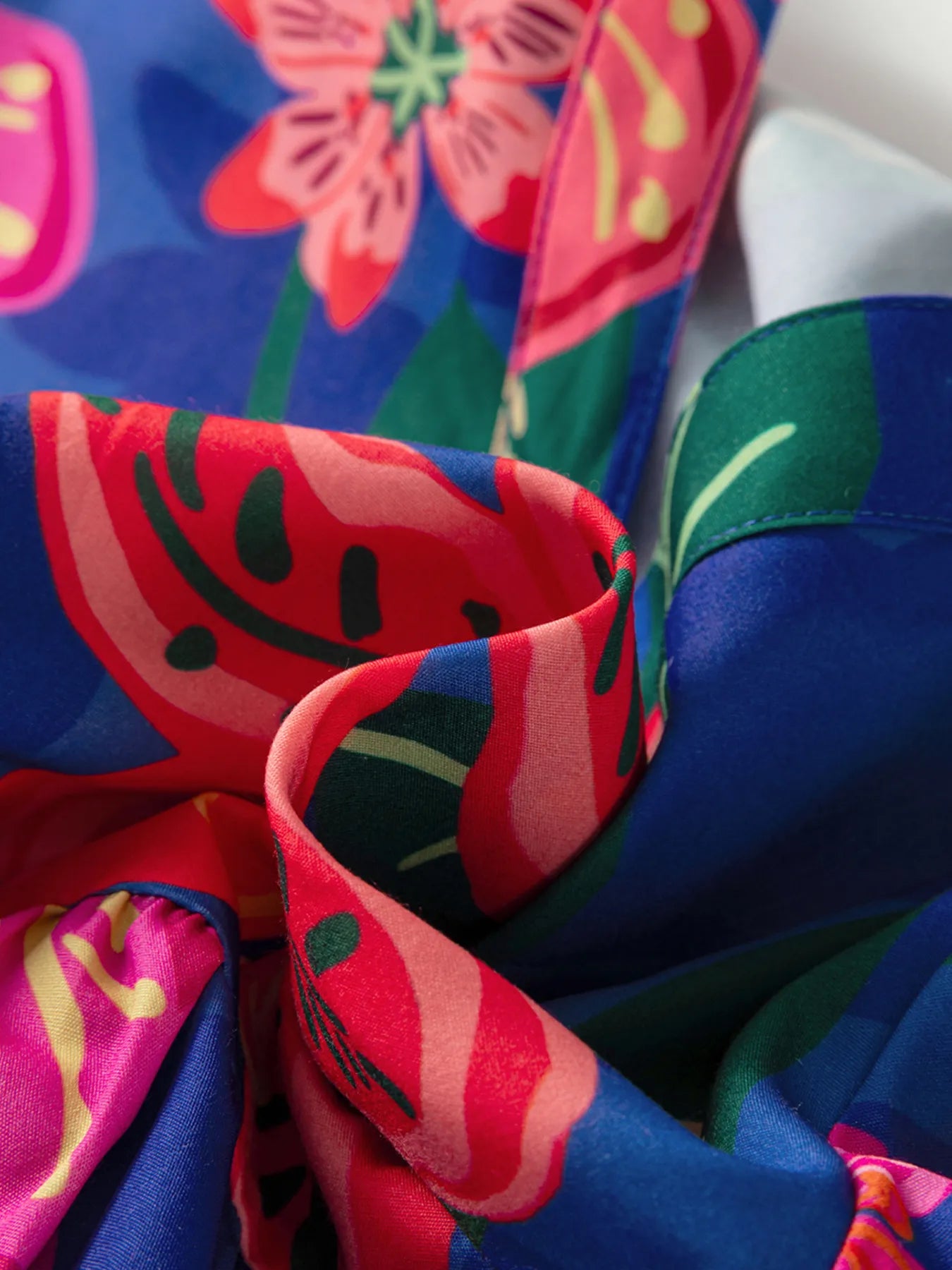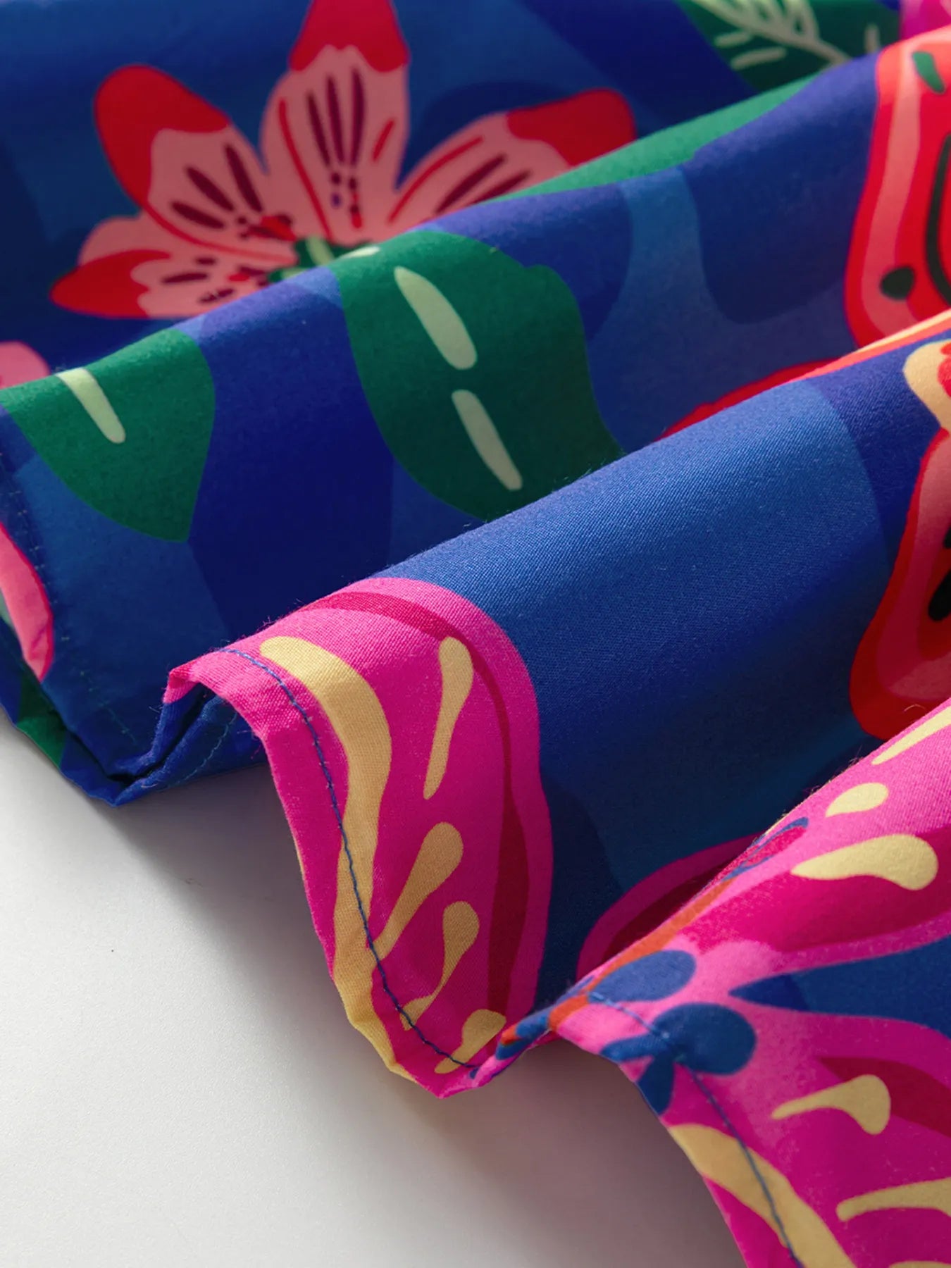 Floral Print 3/4 Sleeve V Neck Tiered Dress