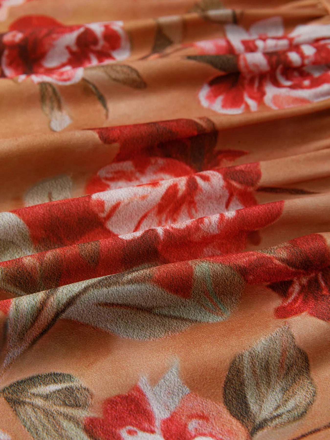 Floral Print Half Button Flounce Sleeve Ruffle Mini Dress