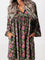 Floral Print Split Neck Bubble Sleeve Shift Mini Dress