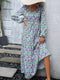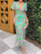 Floral Print V-Neck Puff Sleeve Midi Dress