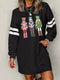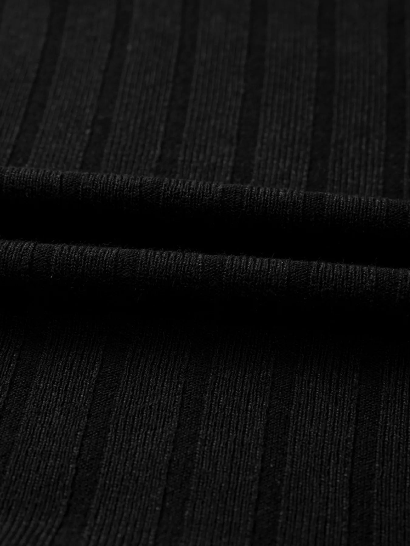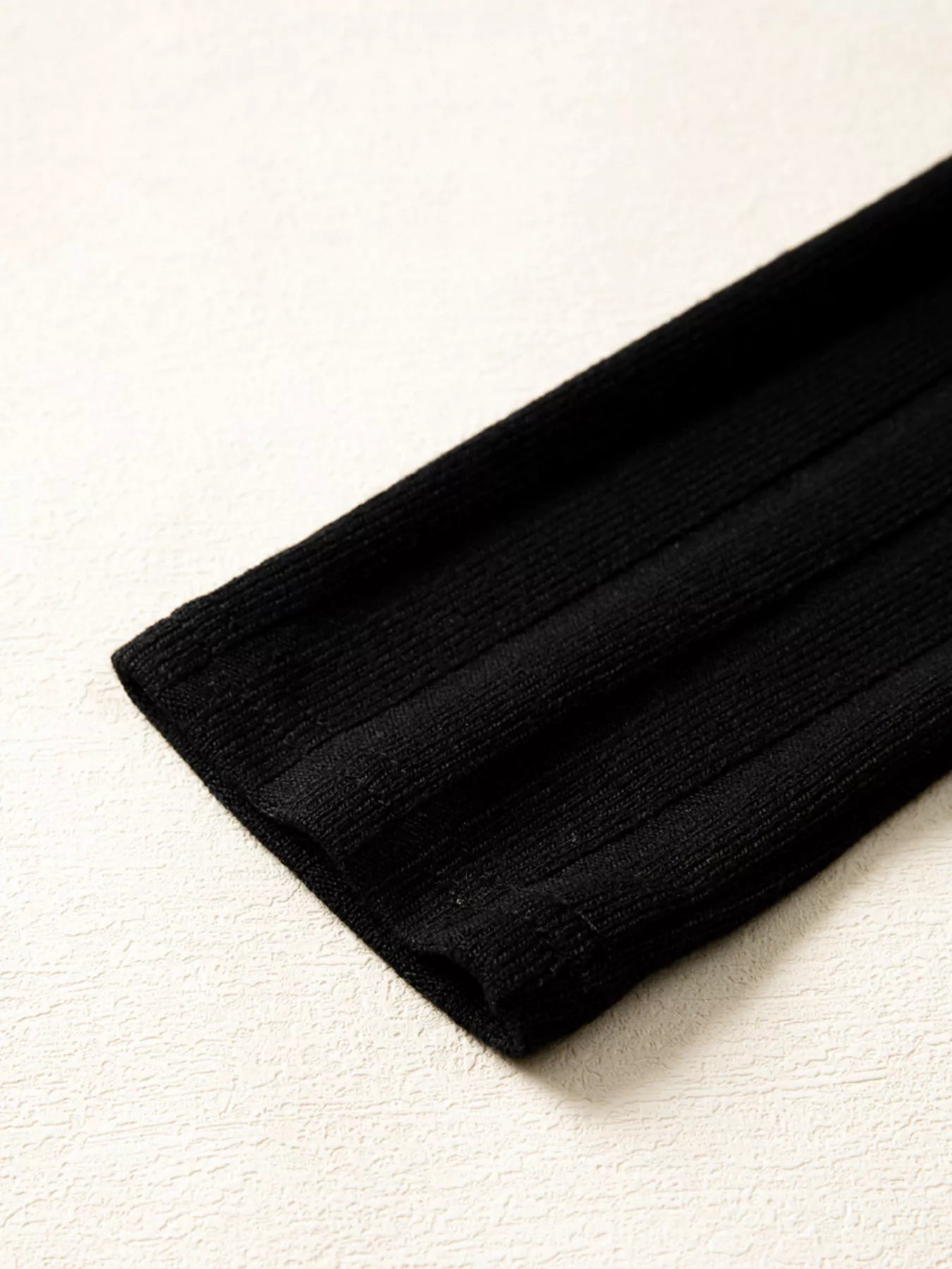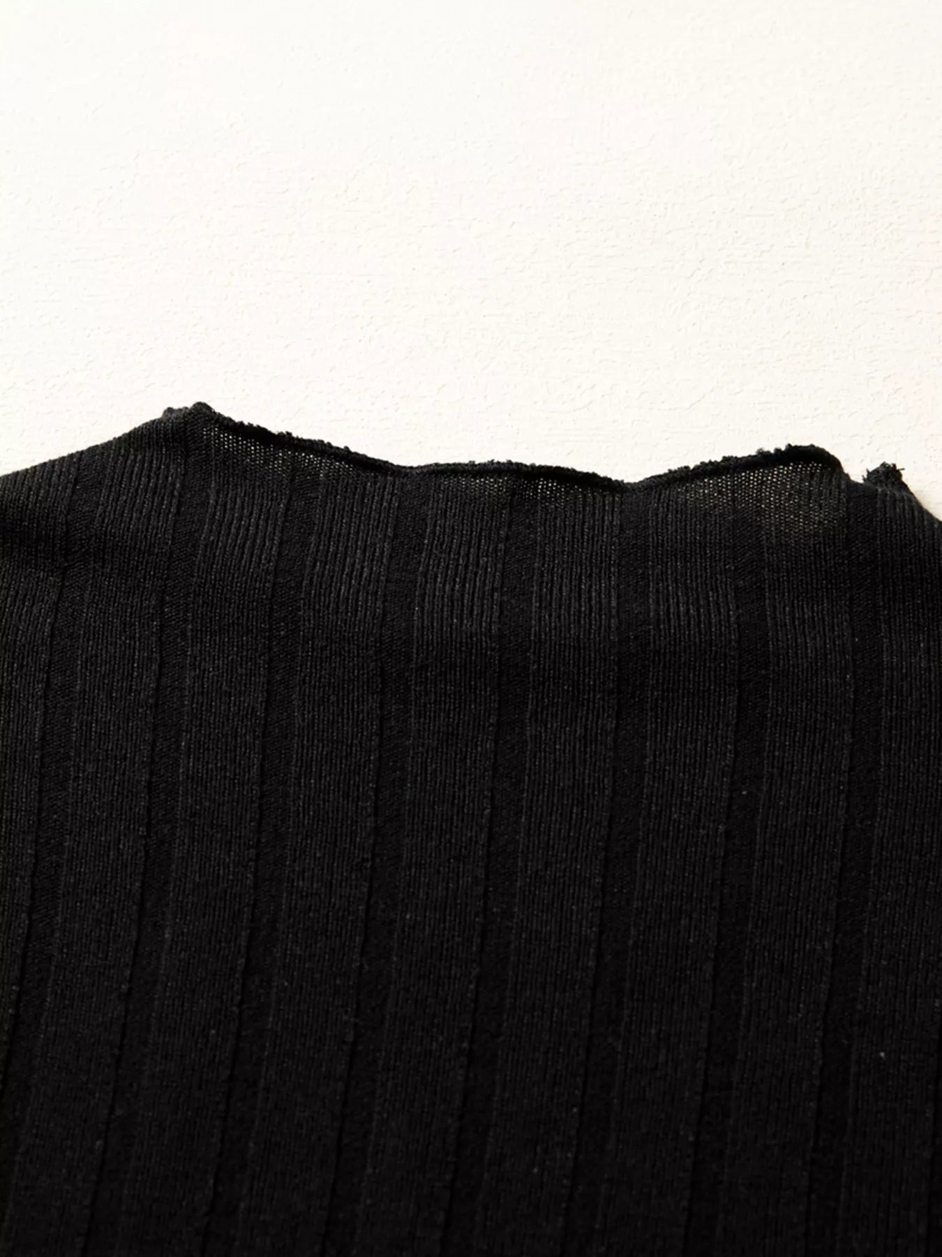 Frilled Neck Ribbed Knit Patchwork Long Sleeve Mini Dress