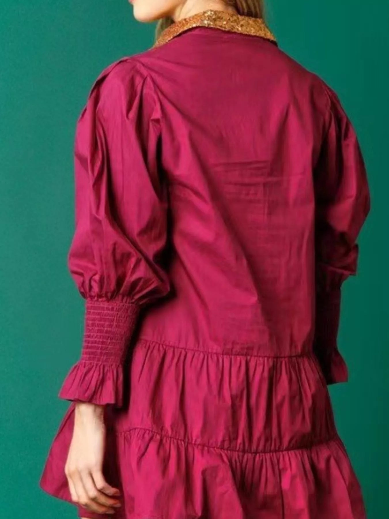 Full Size Christmas Sequin Nutcracker Tiered Shirt Dress Plus Size
