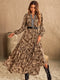 Full Size Smocked Printed V-Neck Short Sleeve Dress