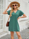 Lace Trim Printed V-Neck 3/4 Sleeve Dress