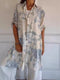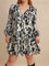 Plus Size Printed V-Neck Long Sleeve Mini Dress
