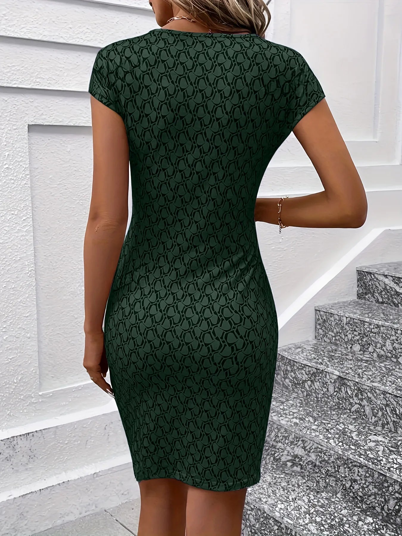 Printed Round Neck Cap Sleeve Dress