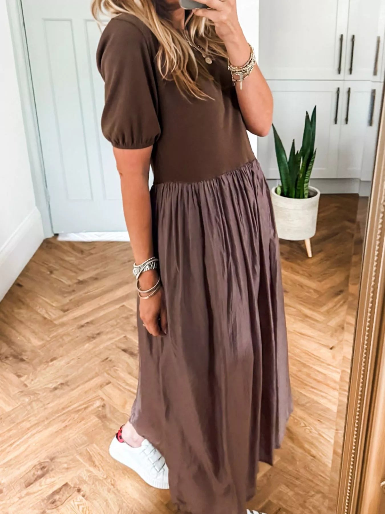 Short Sleeve Knit Top Patchwork Pleated Dress
