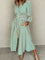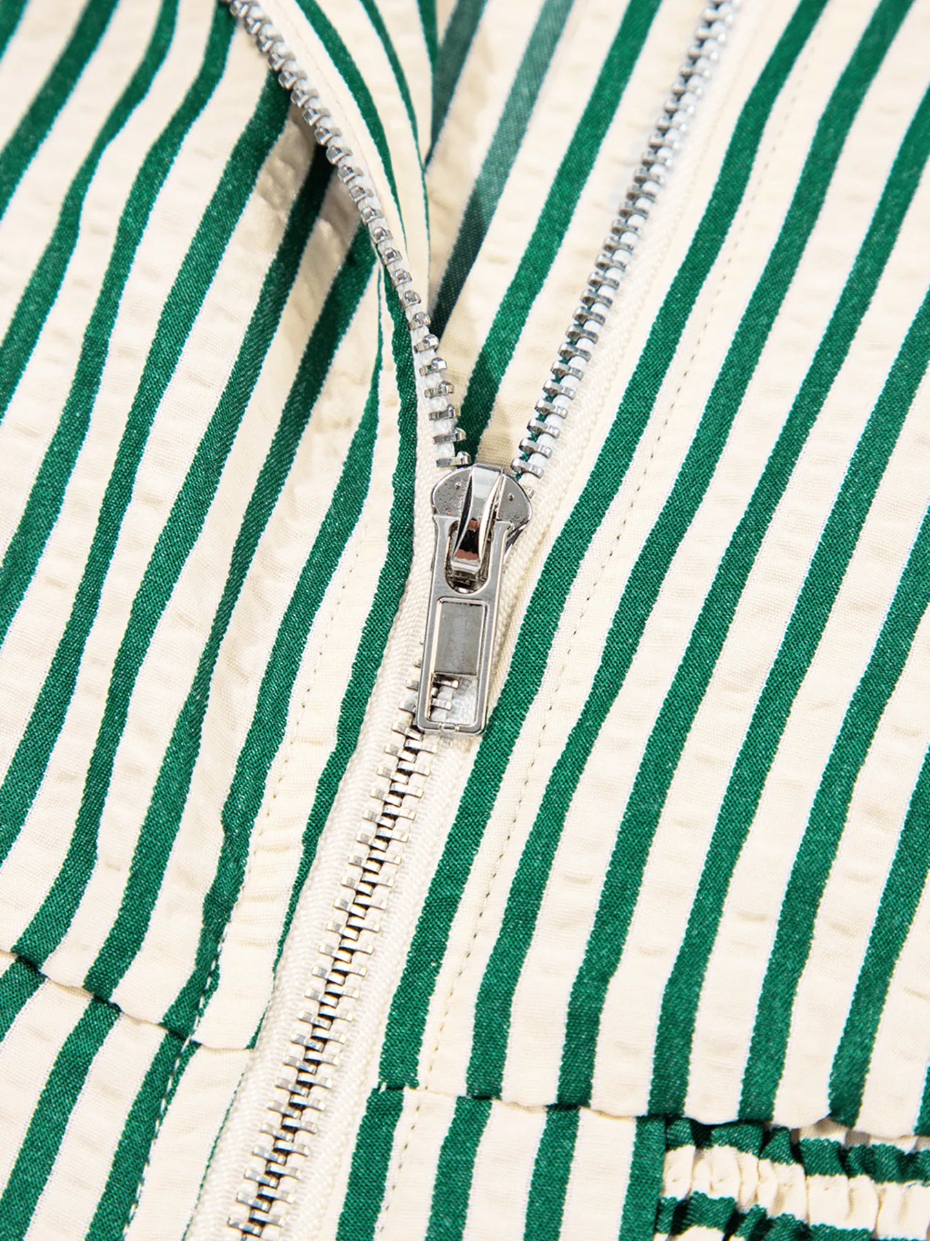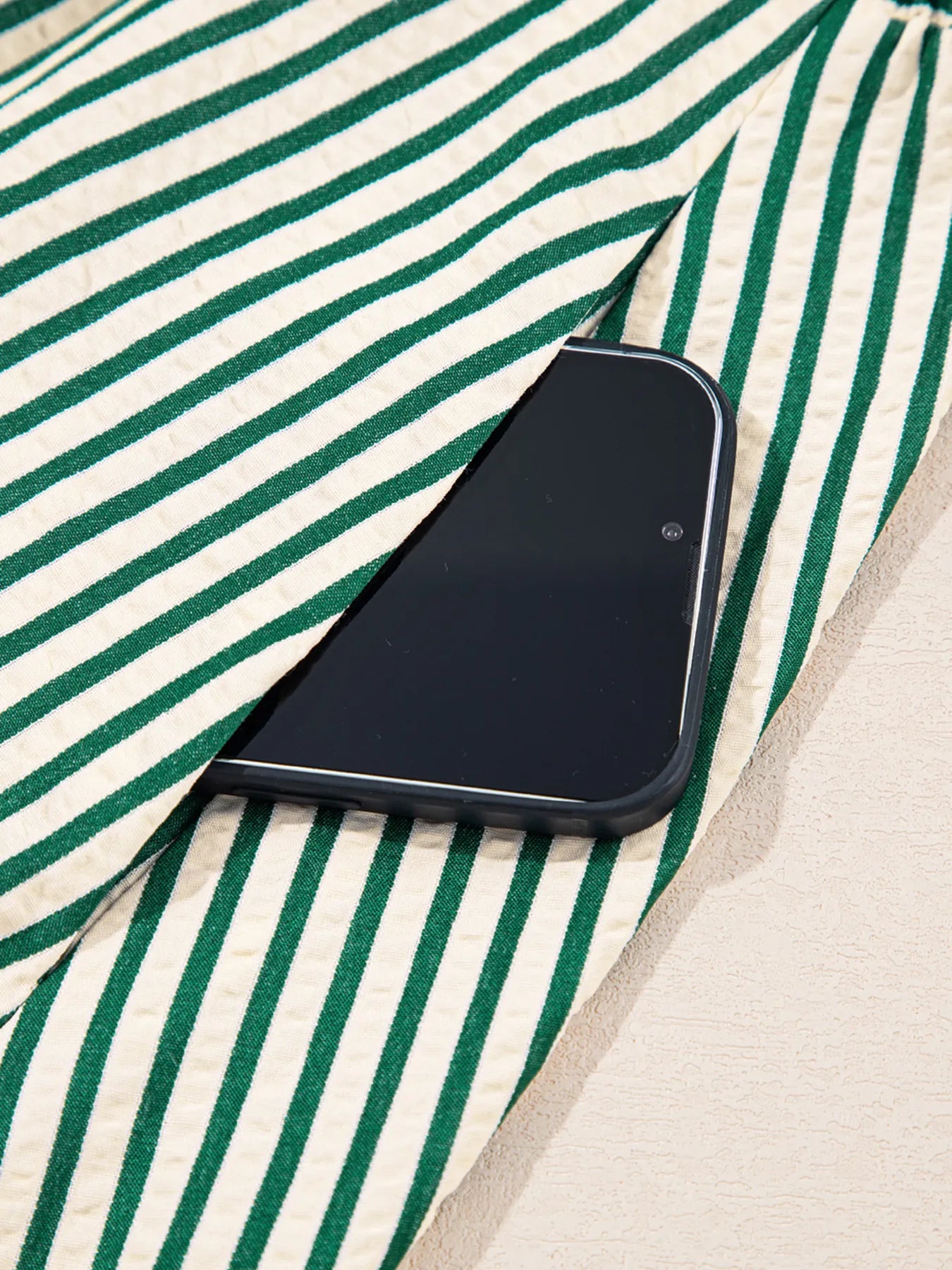 Stripe V Neck Zip Front Cinched High Waist Midi Dress