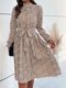 Tie-Neck Long Sleeve Mini Dress with Trim Detail