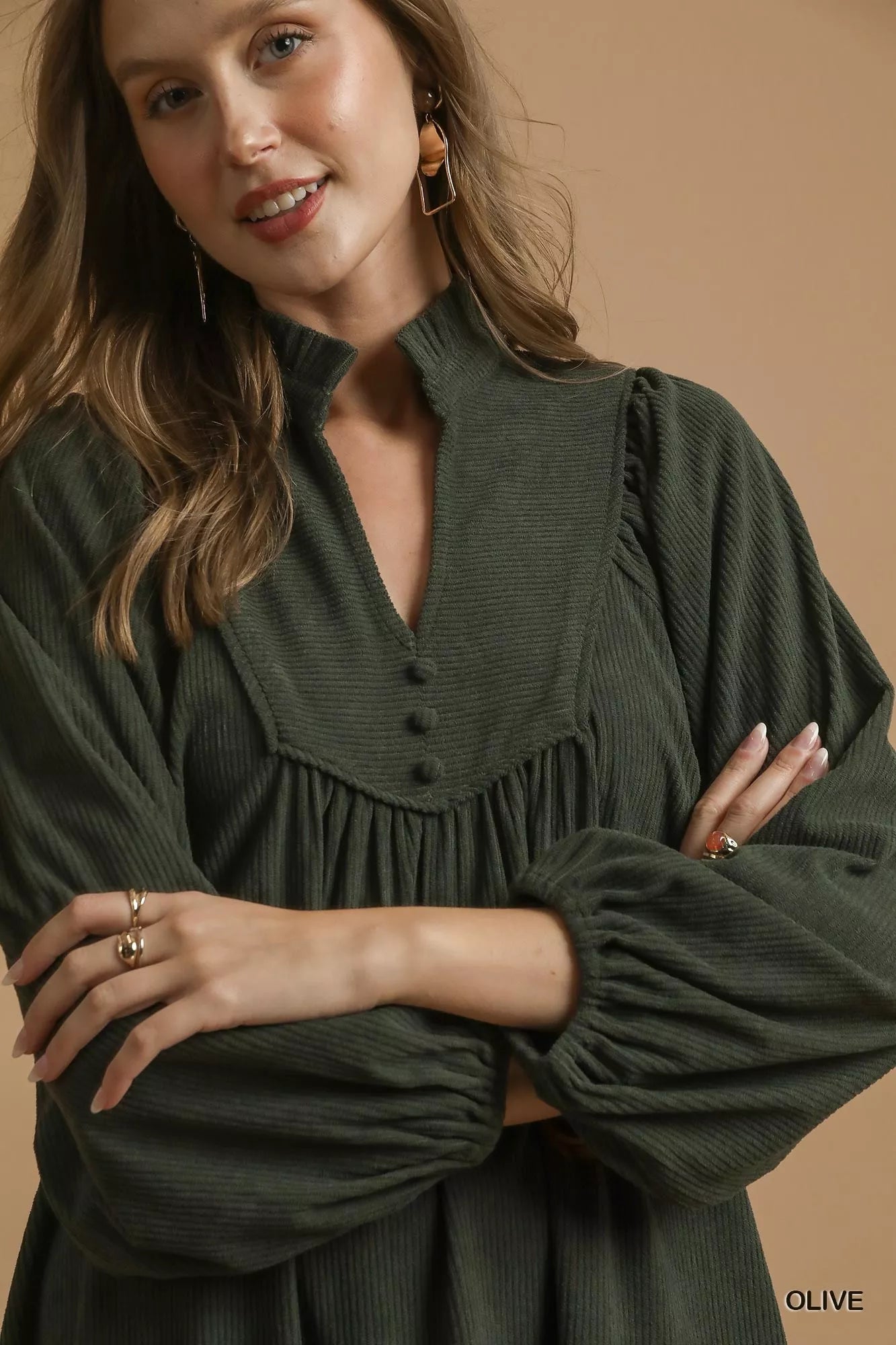 The corduroy tiered babydoll dress is a charming and retro-inspired piece with a playful twist. The corduroy fabric offers a cozy and textured feel, perfect for cooler weather or adding an element of nostalgia to your outfit. The tiered design creates a flattering and flowy silhouette that adds volume and movement to the dress. This babydoll dress exudes a sweet and feminine vibe, making it a versatile option for casual daywear or dressed-up occasions. Pair it with boots and a cardigan for a cozy autumn look, or dress it up with heels and statement accessories for a chic and playful ensemble.
