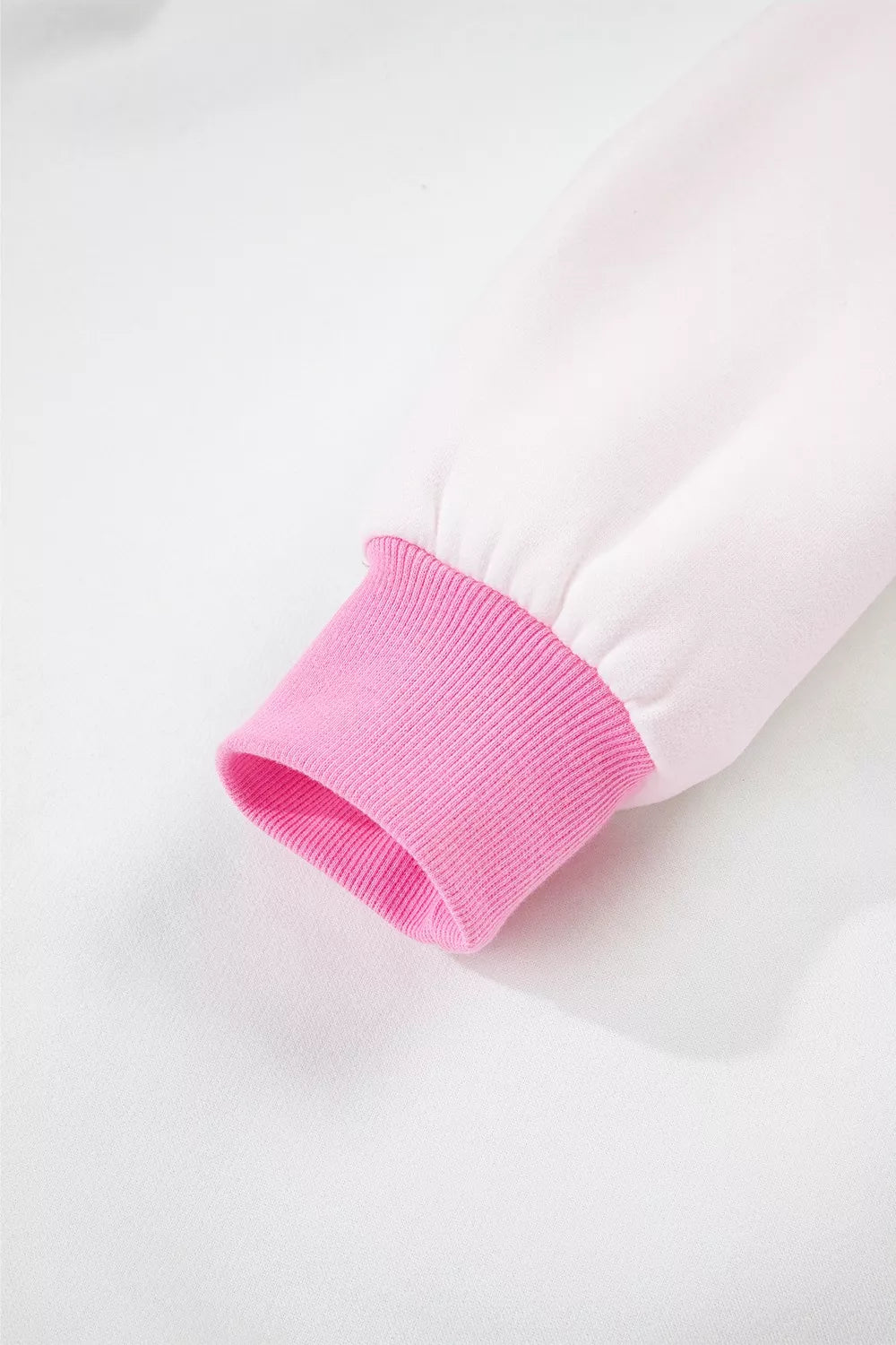 Color Block Sweatshirt and Elastic Waist Shorts Set