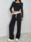 Contrast Trim Crop Top and Wide Leg Pants Set