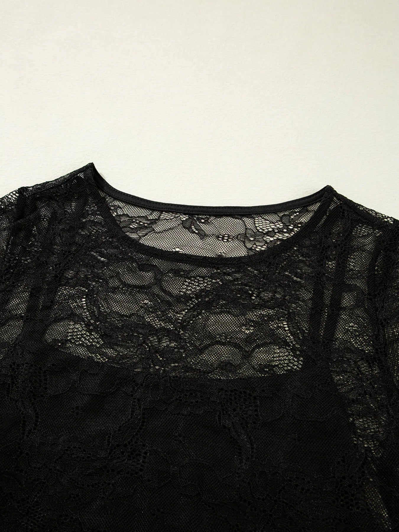 Lace Crochet Mesh Patched Slim Fit Long Sleeve Top