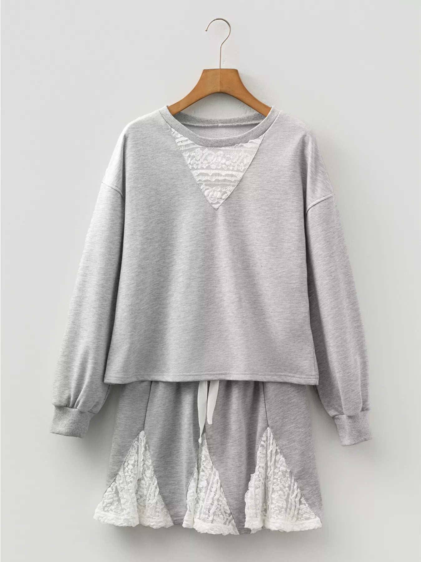 Lace Patchwork Drop Shoulder Top and Drawstring Skort 2pcs Outfit