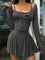 This stylish two-piece set features a soft pink ribbed knit construction that offers both comfort and stretch. The long sleeve crop top showcases an off-shoulder design with button front closure and ruffle detailing, while the matching cami dress provides adjustable straps and a flirty ruffle hem. Made from high-quality knit material, this coordinated set offers versatile styling options - wear together for a cohesive look or mix and match with other wardrobe pieces. The form-fitting silhouette flatters the figure while the feminine pink color adds a sweet, romantic touch perfect for various occasions from casual outings to special dates.