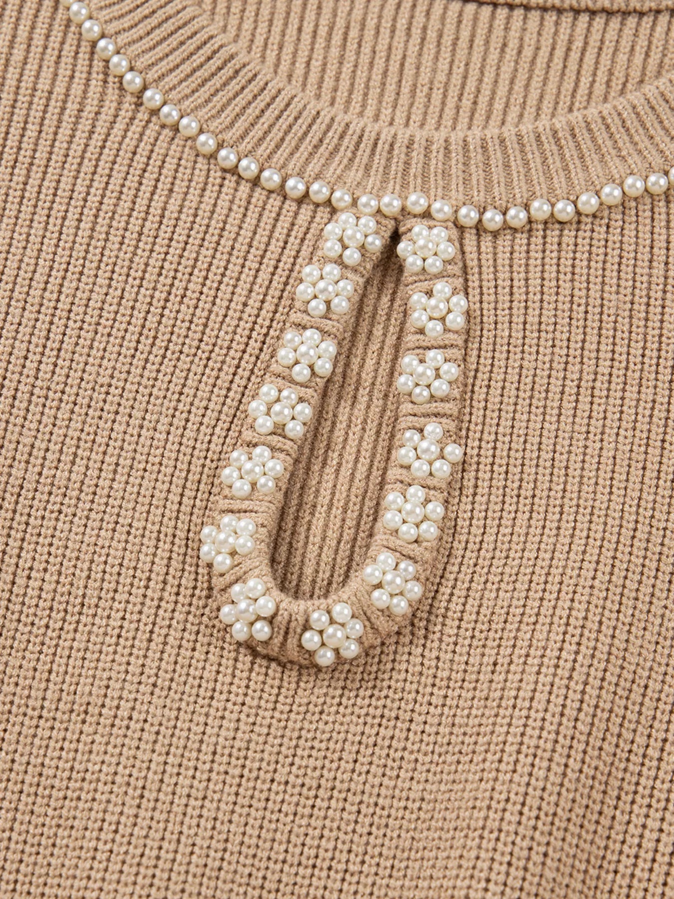 Pearl Embellished Keyhole Ribbed Sweater Dress