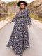 Pleated Mock Neck Long Sleeve Maxi Dress
