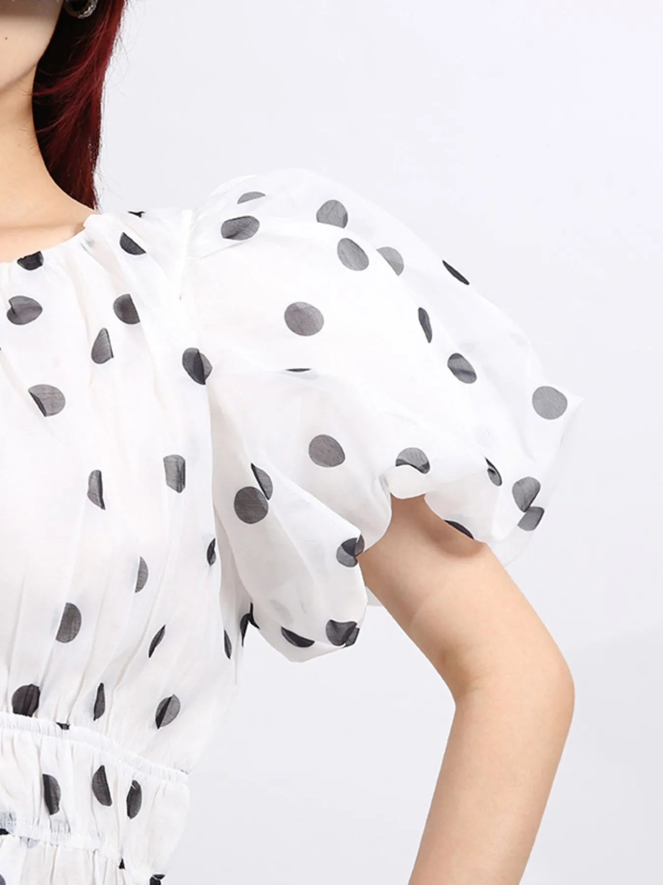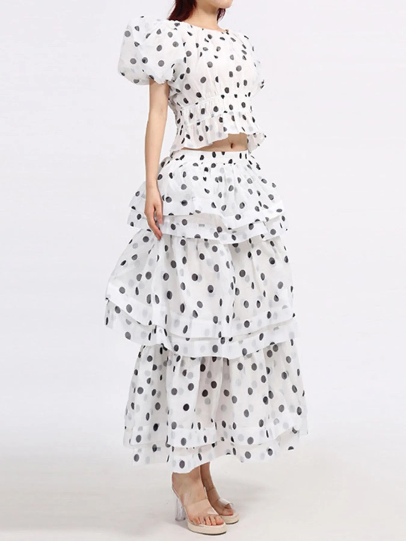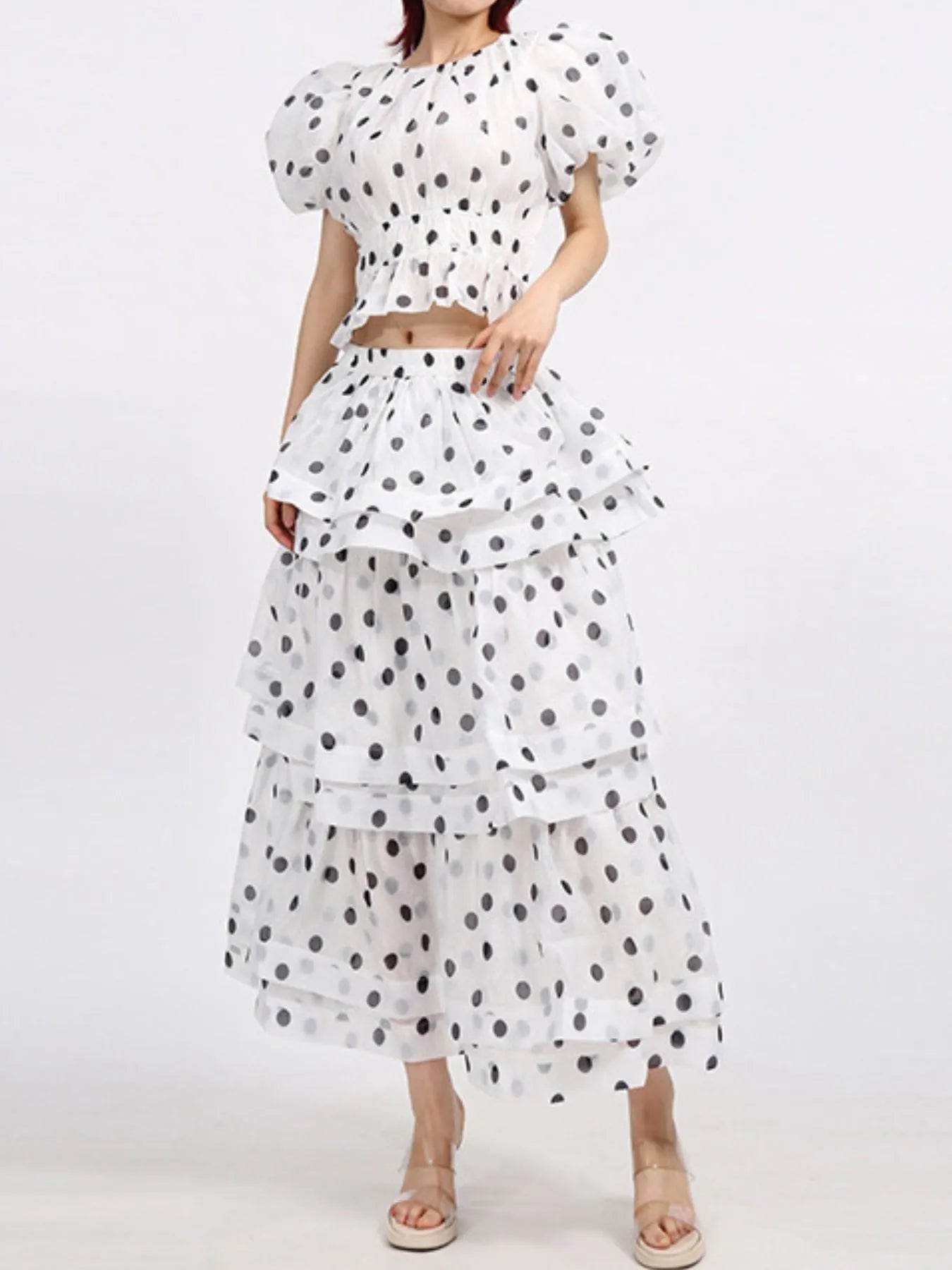 Polka Dot Puff Sleeve Top and Skirt Set