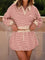 tripe Cropped Collared Drop Shoulder Pullover and Bubble Mini Skirt Set