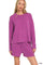 This stylish ribbed knit loungewear set features a comfortable two-piece design perfect for casual wear and relaxation. Made from soft, stretchy ribbed fabric in an attractive purple plum shade, the set includes an oversized long-sleeve pullover top and matching comfortable shorts. The ribbed texture adds visual interest while providing excellent stretch and recovery. Ideal for lounging at home, running errands, or casual social gatherings. The relaxed fit ensures all-day comfort while maintaining a put-together appearance. Machine washable for easy care and maintenance.