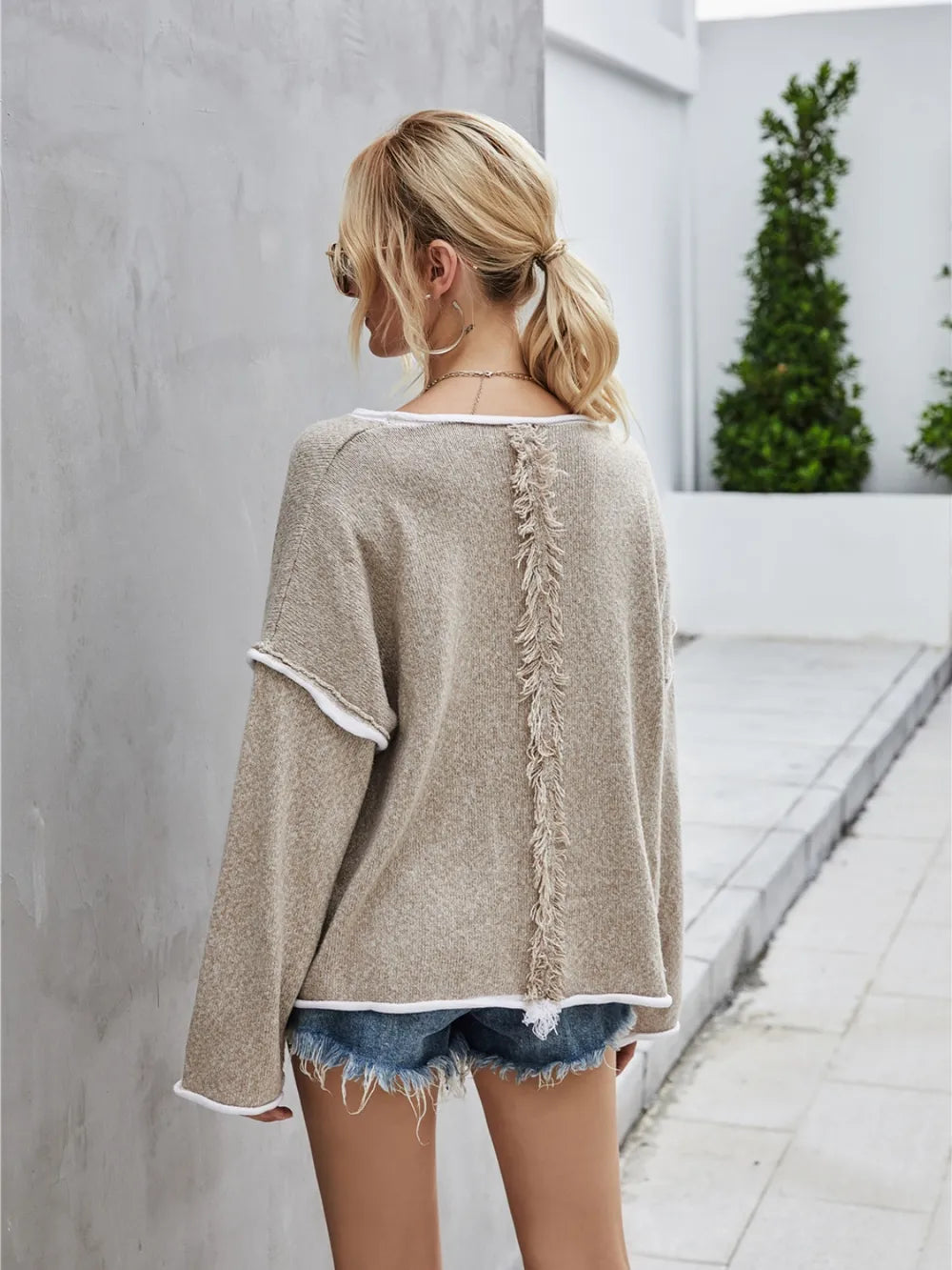 Angel Wings Boat Neck Dropped Shoulder Sweater