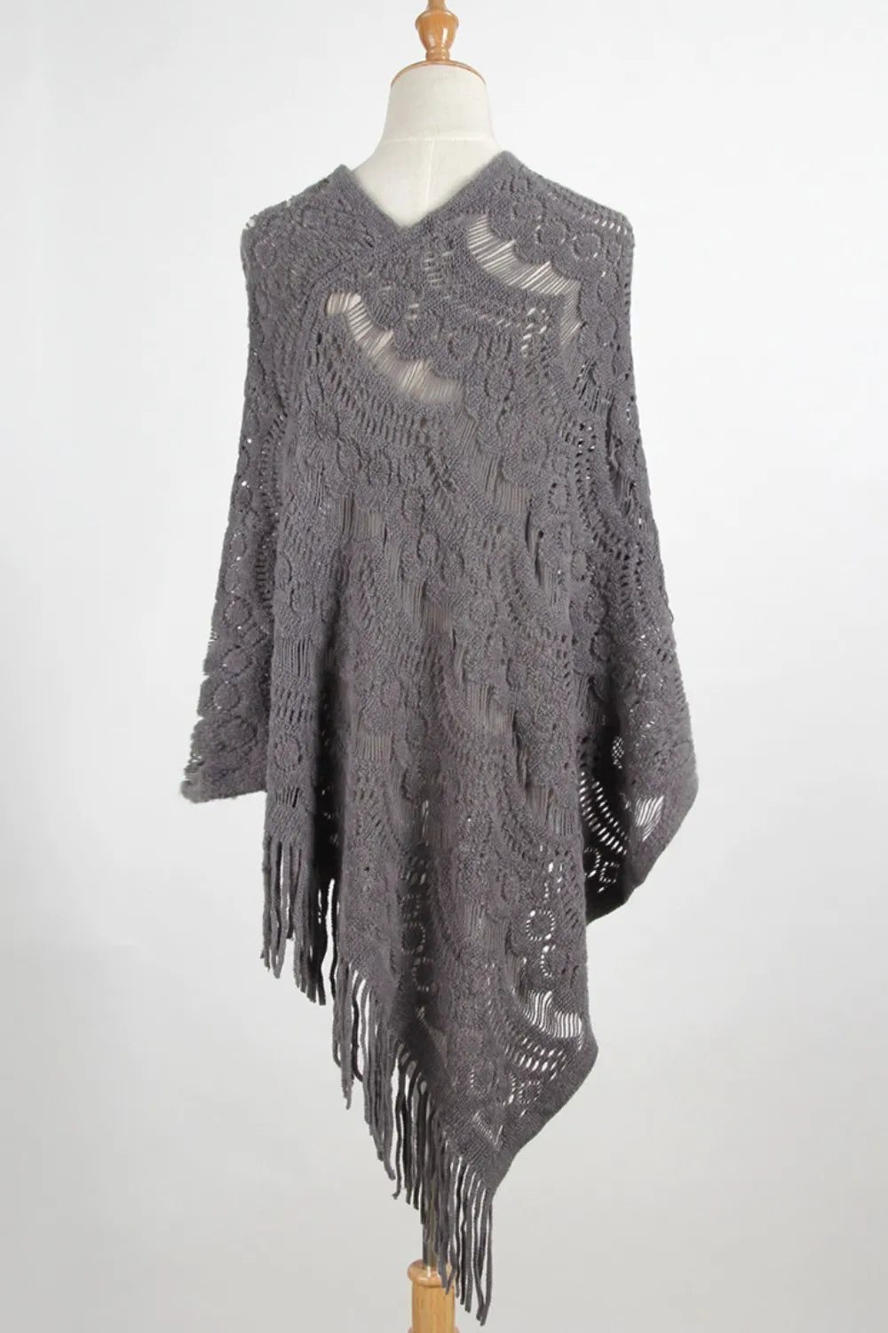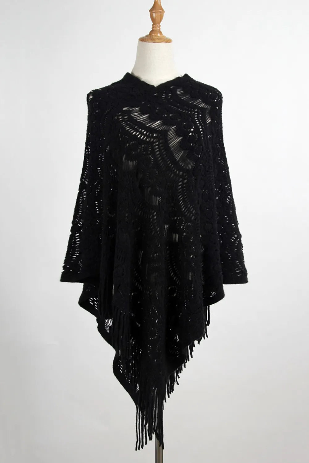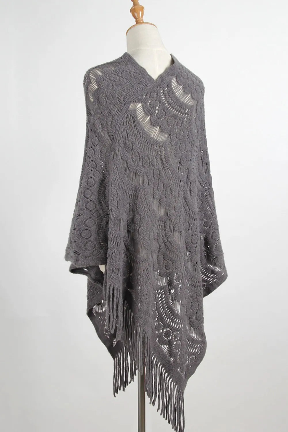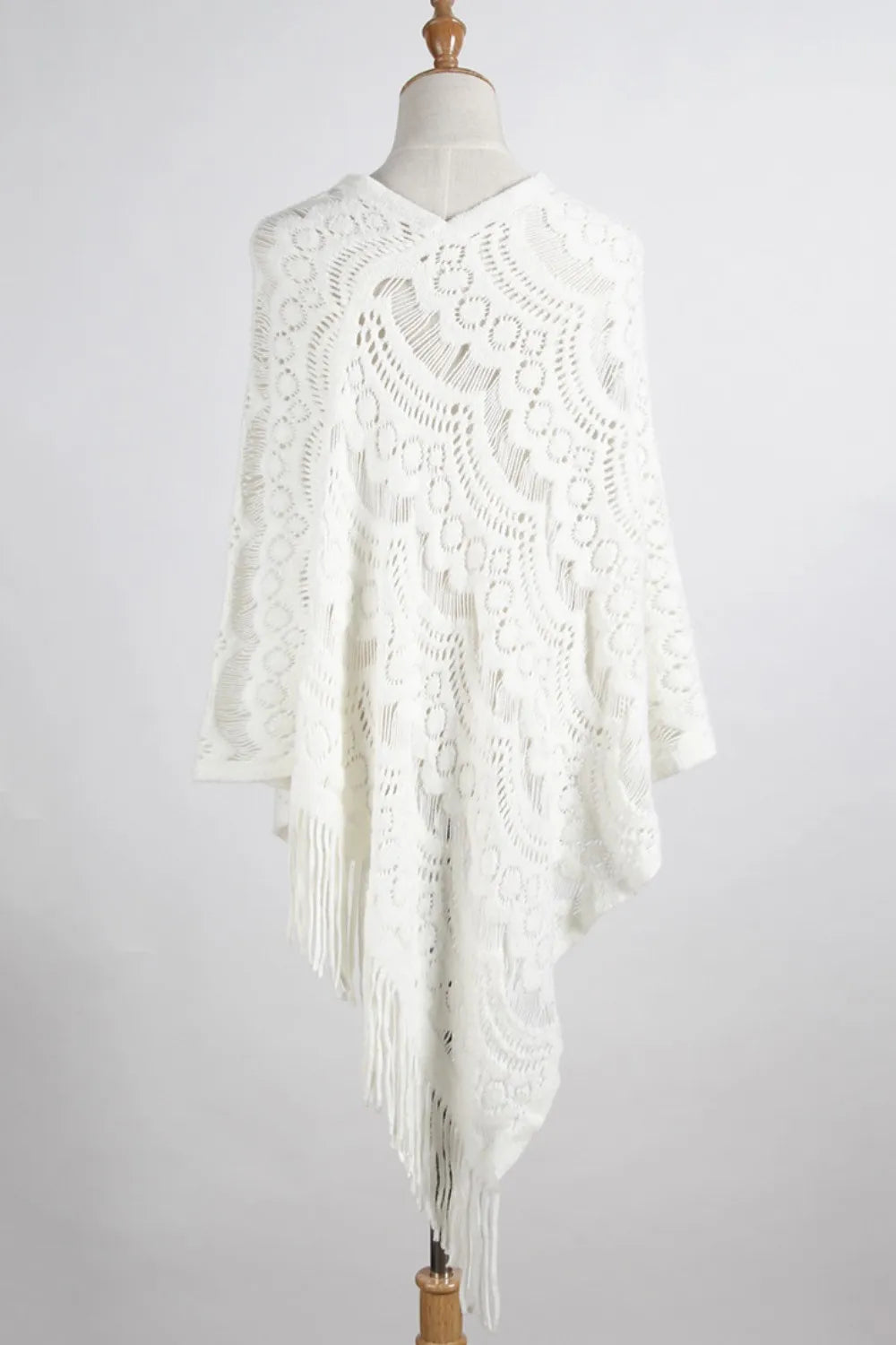 Fringe Openwork Surplice Cape Sleeve Poncho