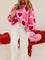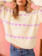 Heart Pattern Checkered Round Neck Sweater