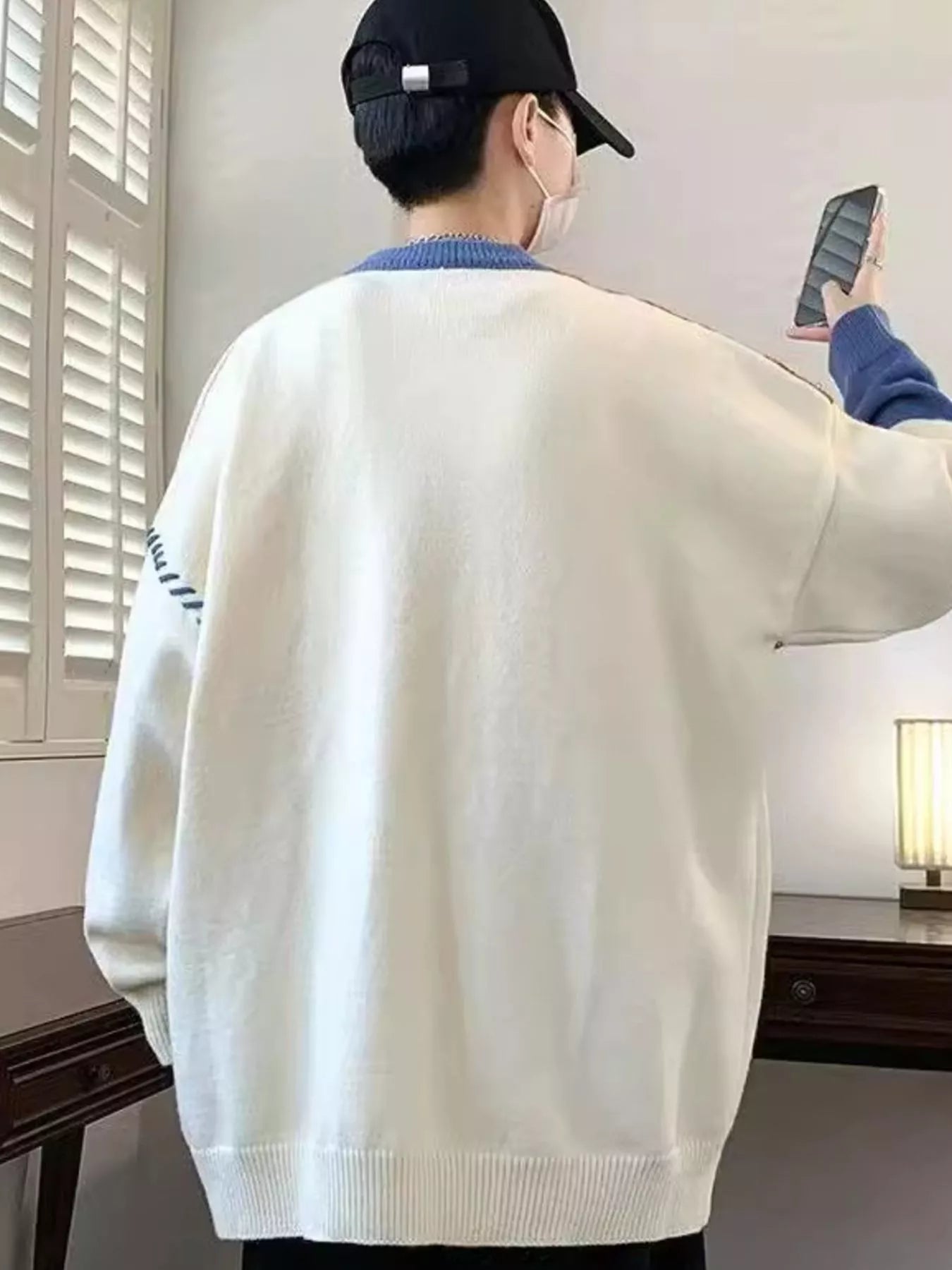Men's Color Block Cable Knit Sweater with Asymmetric Design