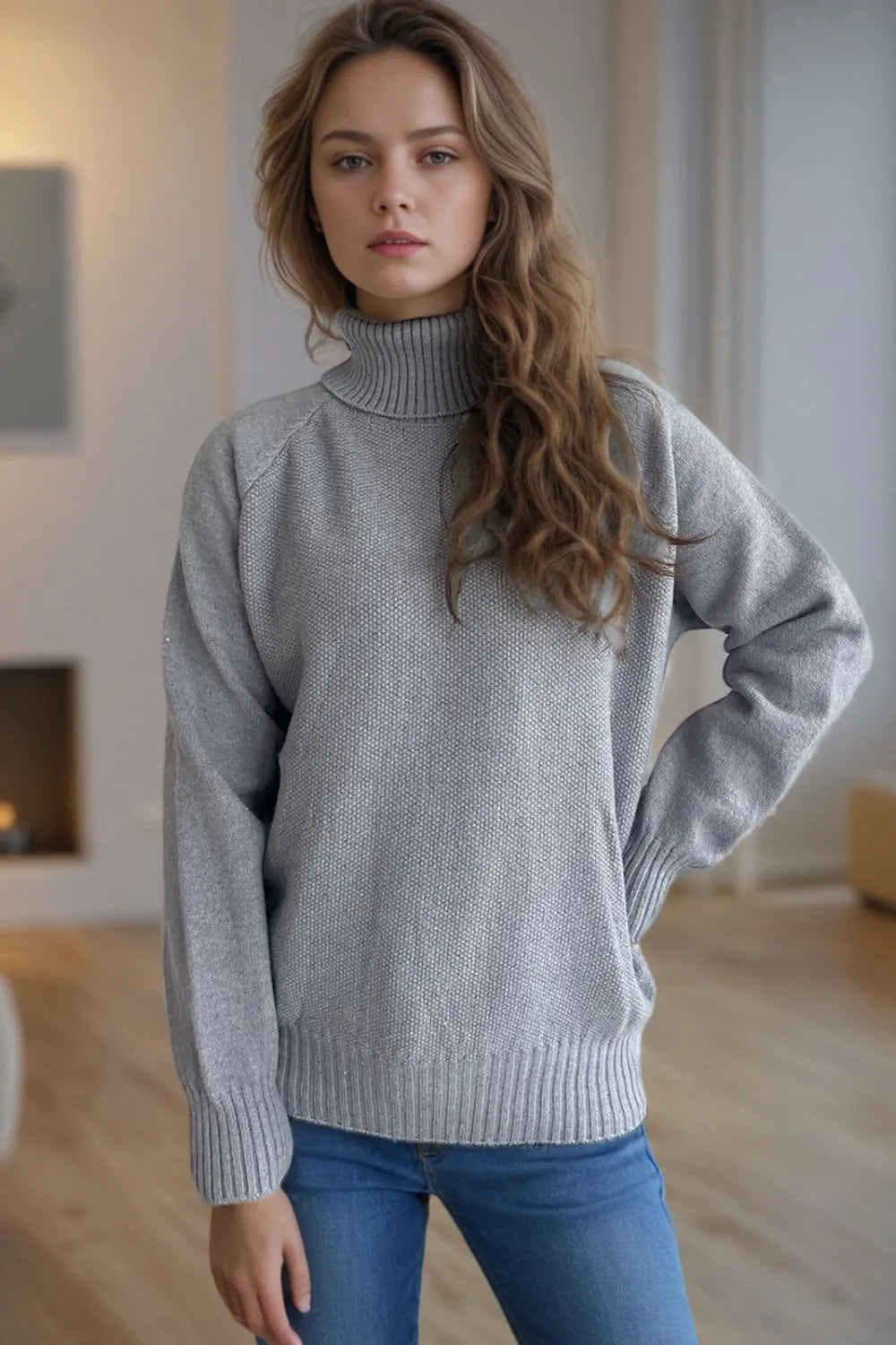 Ribbed Turtleneck Raglan Sleeve Sweater