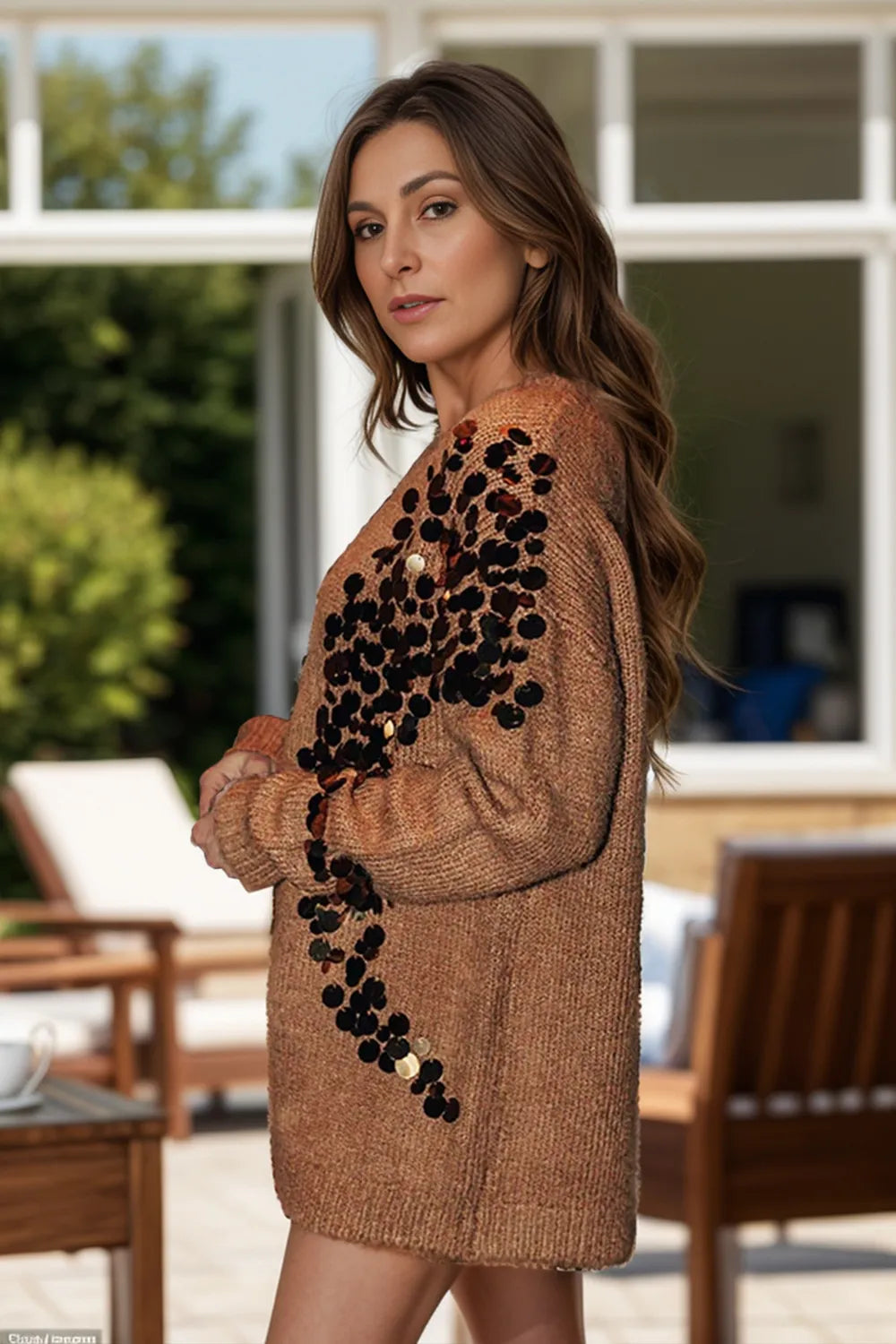 Sequin Round Neck Long Sleeve Sweater