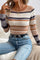 Stripe Stylish Pattern Knitted Ribbed Trim Slim Sweater